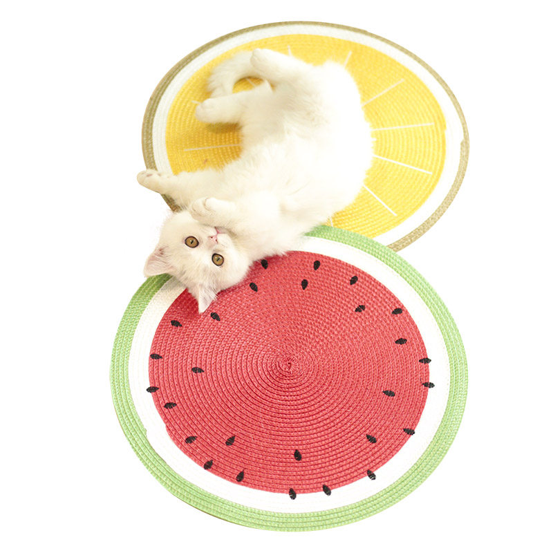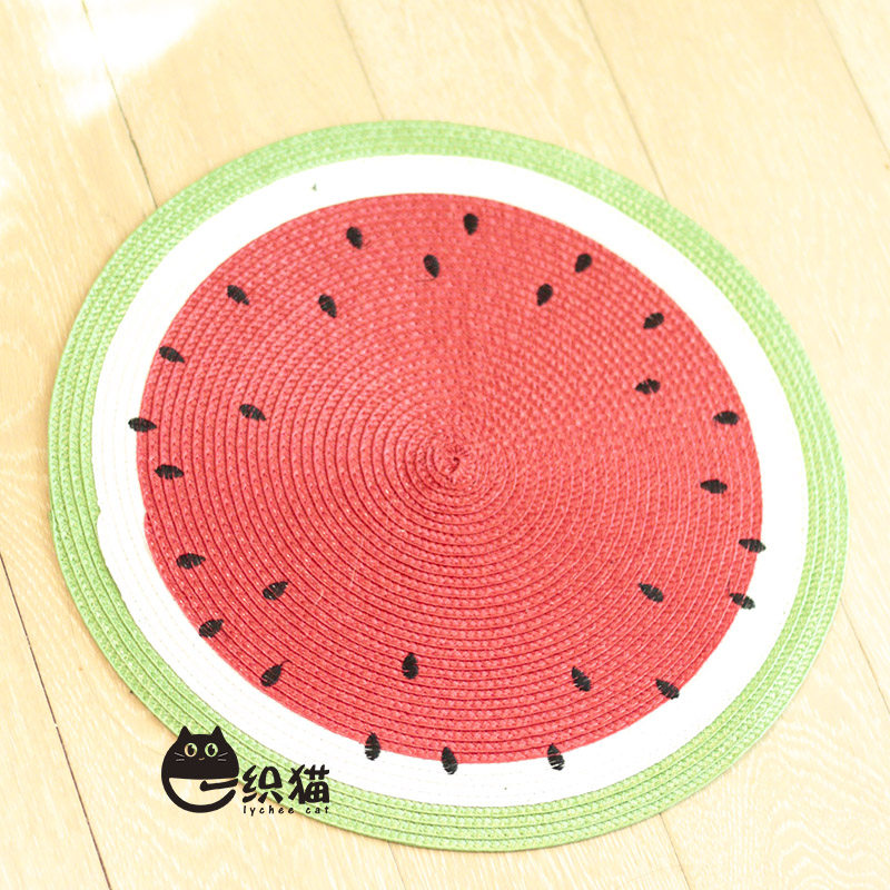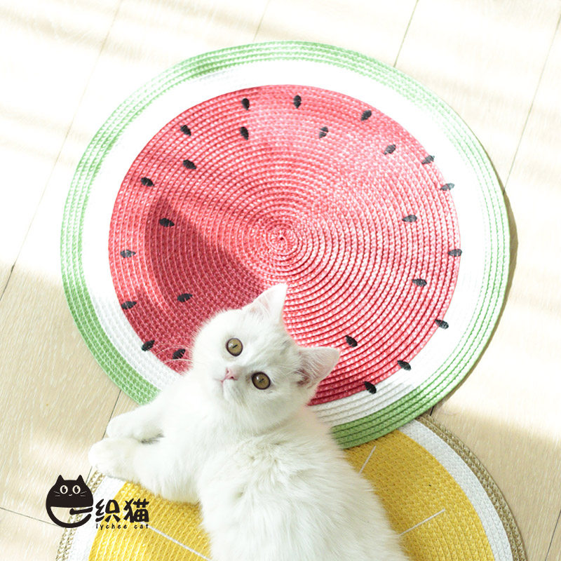 A woven cat summer watermelon woven mat Japanese cat multi-functional cat bowl mat Cool feeling mat Sleeping mat Cat supplies