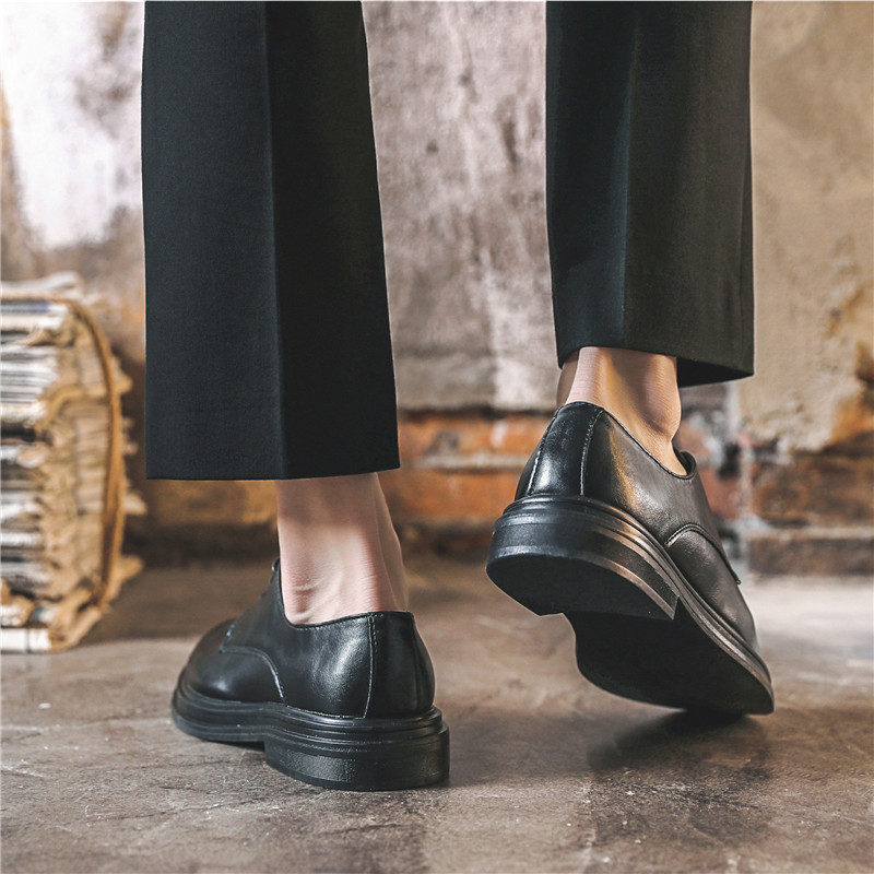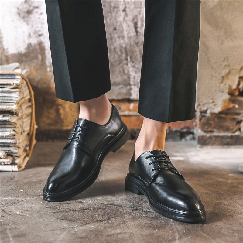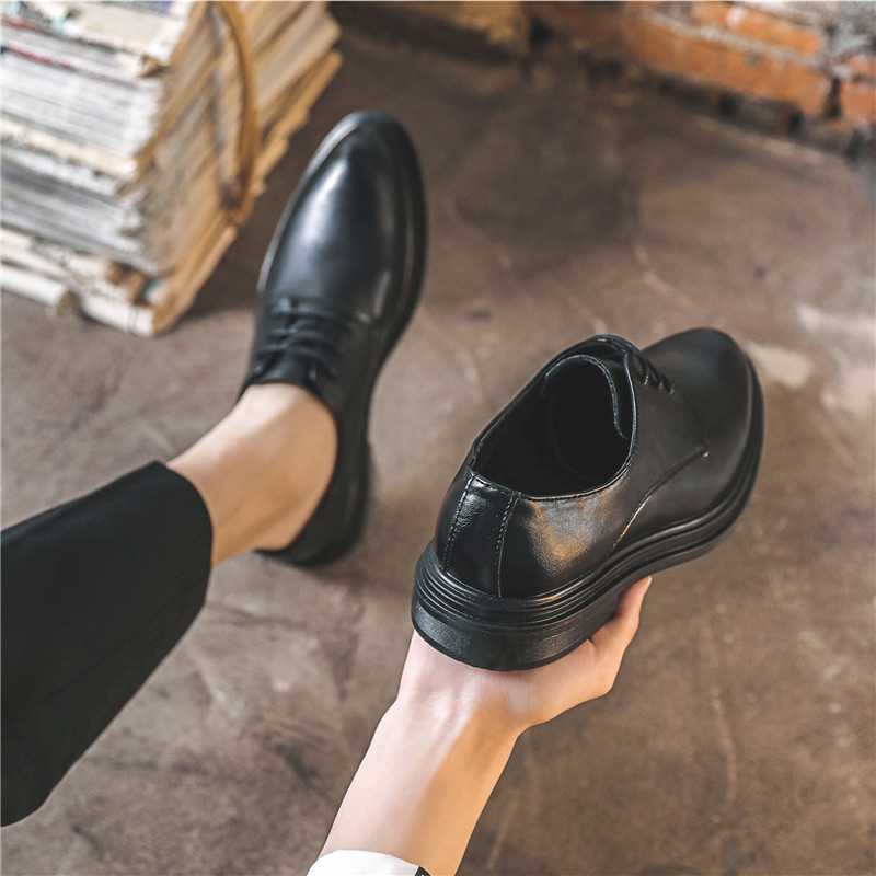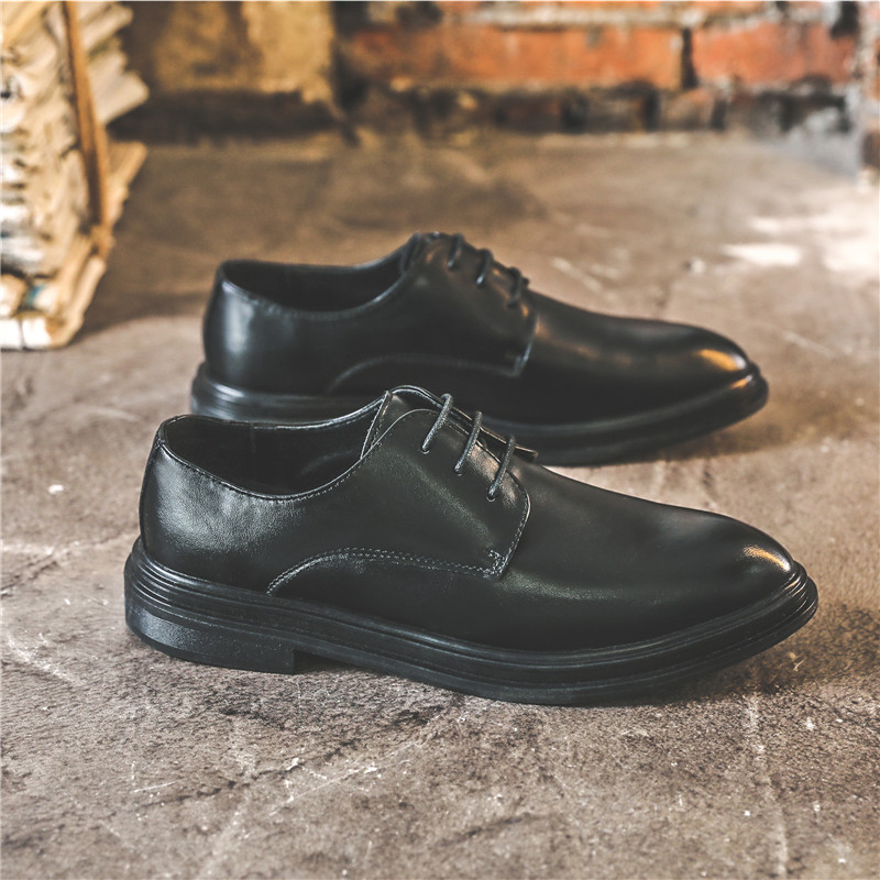 Leather shoes men's genuine leather Korean version business suit pointy toe all-match summer trend breathable black groom wedding shoes men
