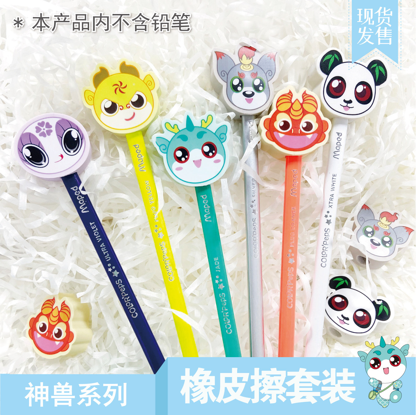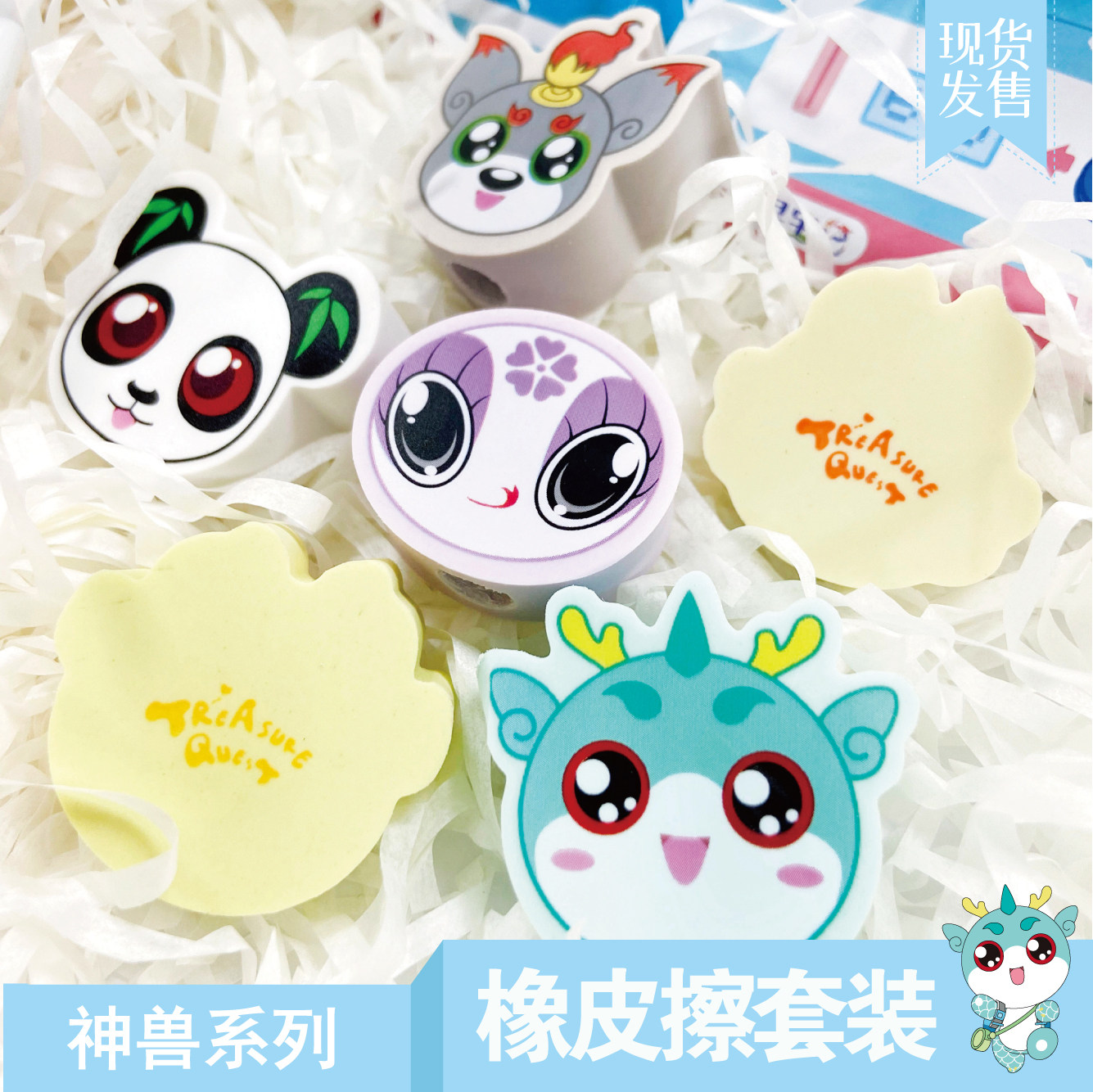 (Great China Treasure Hunt) Wenchuang Peripheral Products Mythical Beast Eraser Elementary School Students Learning Stationery Set