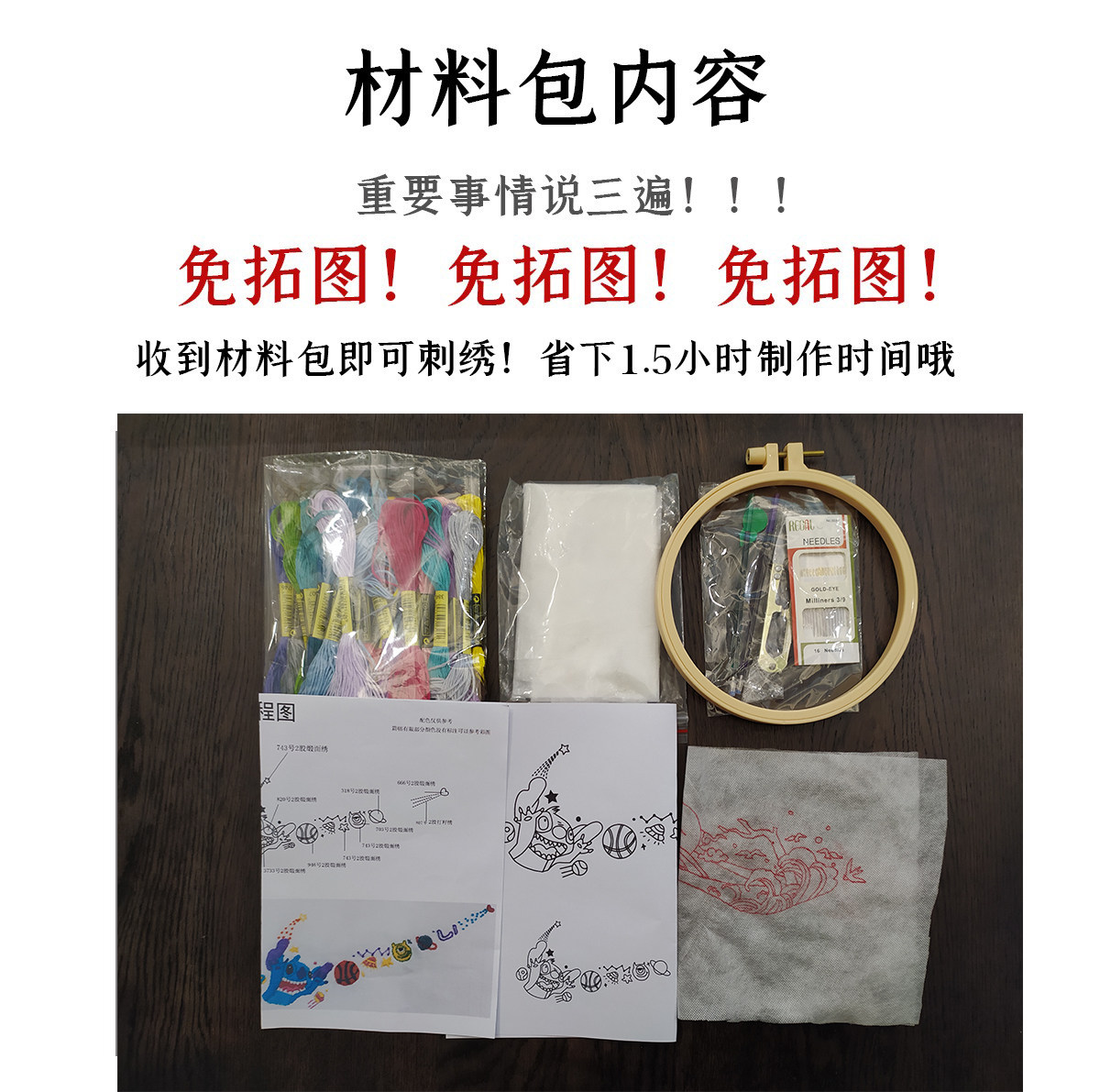 Black embroidery special short sleeve T-shirt white embroidery special short sleeve T-shirt Dunhuang wind diy material bag can embroider two Sadie digy material bags to embroider two Li Ning astronaut diy