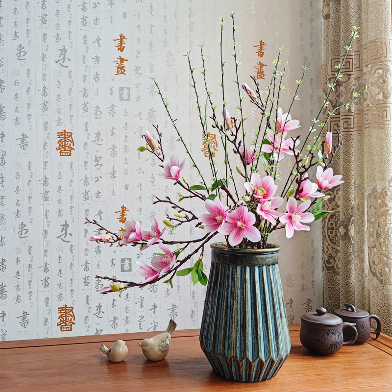 Flower vase with a single bundle of flowers and flowers