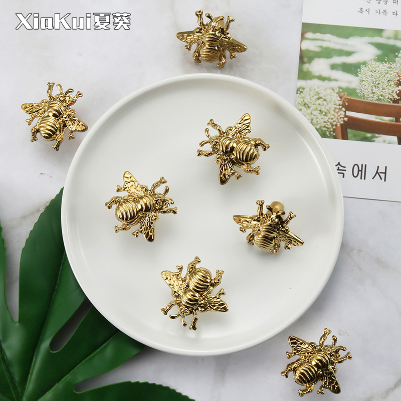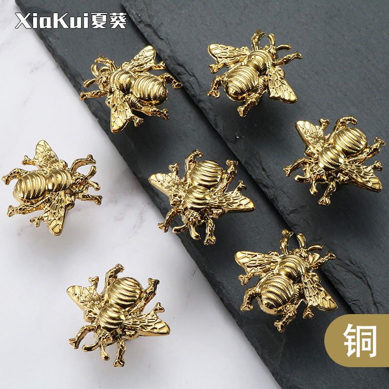 Light Extravagant Nordic Brass Cabinet Door Handle Pure Copper Cute Personality Creative Honeybee Cartoon Gold full copper drawer handle
