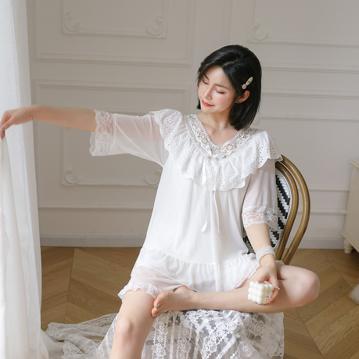 Palace style pajamas women's summer 2022 new short-sleeved lace thin section princess style net red home service two-piece suit