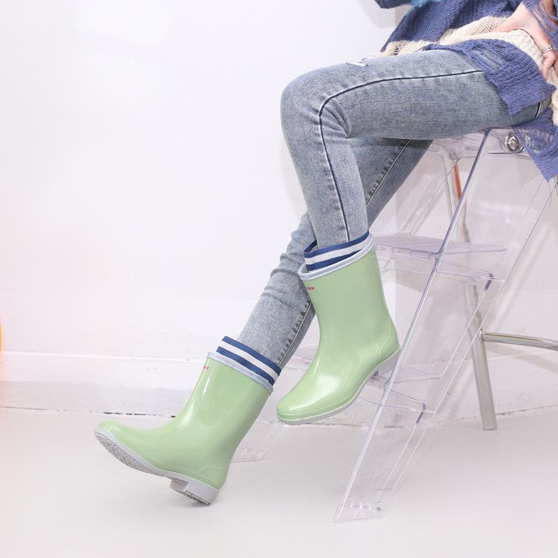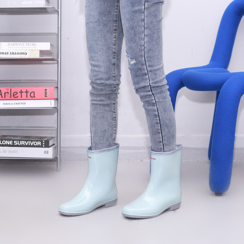 Zhexing rain shoes female adult medium tube fashion water shoes women's water rubber shoes Japanese women's rain boots plus velvet warm water boots