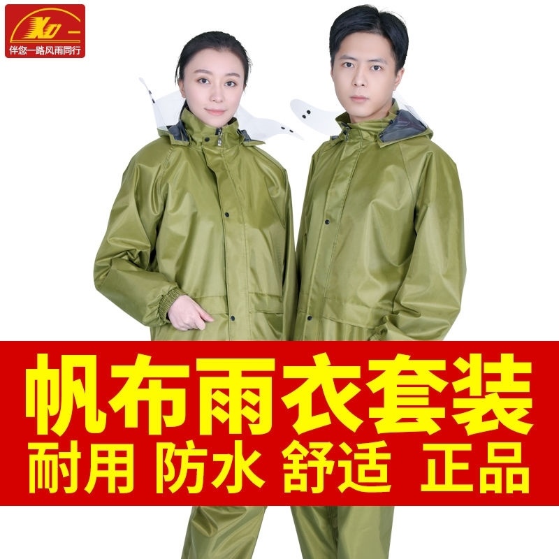 Laubao Canvas Coat Rain Raincoat Rain Pants Suit Thickened Canvas Full Body Waterproof male and female adult locomotive raincoat Electric