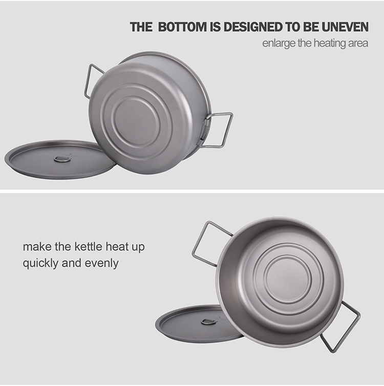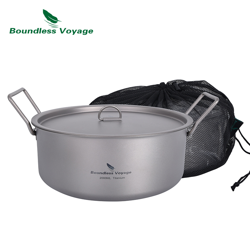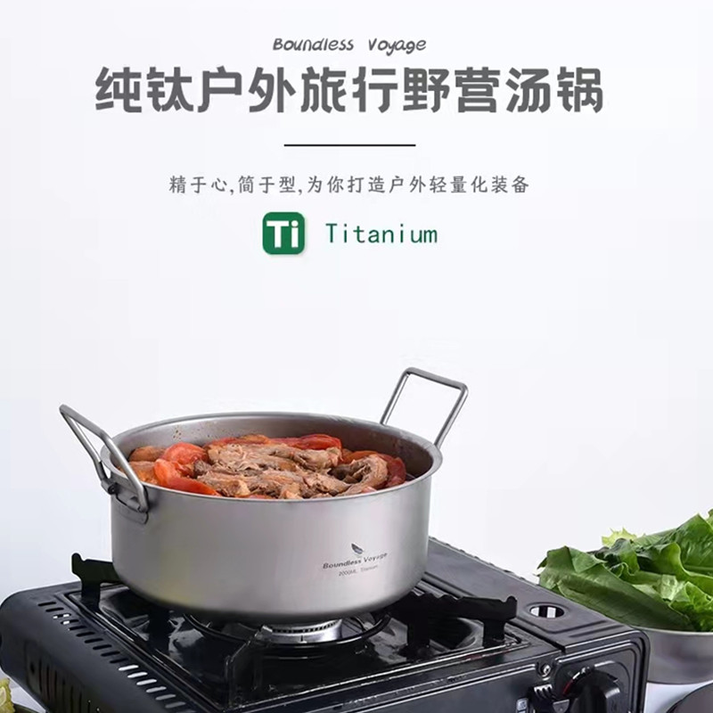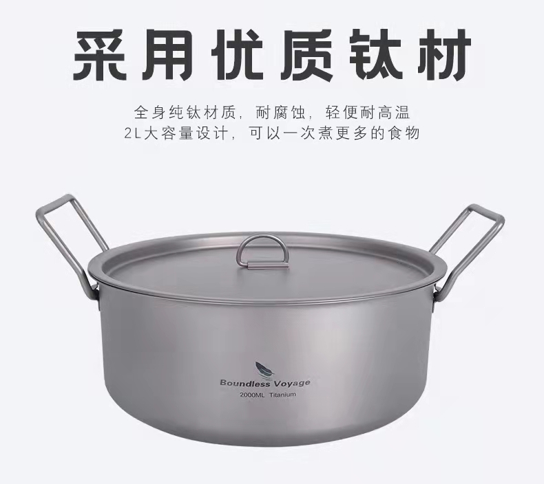 Mandatory Outdoor Pure Titanium Pan Large Capacity Camping Soup Pot picnic 2L with lid Hotpot ultralight portable cover pan cooker