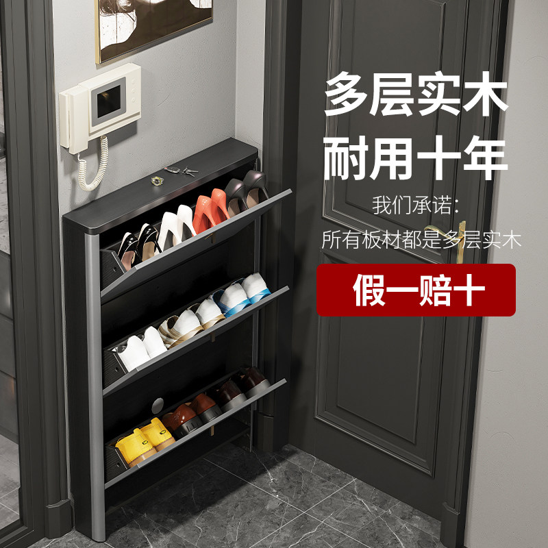Ultra-thin flip shoe cabinet 13cm household door full solid wood rock board household door 14cm 10 wide 17 narrow