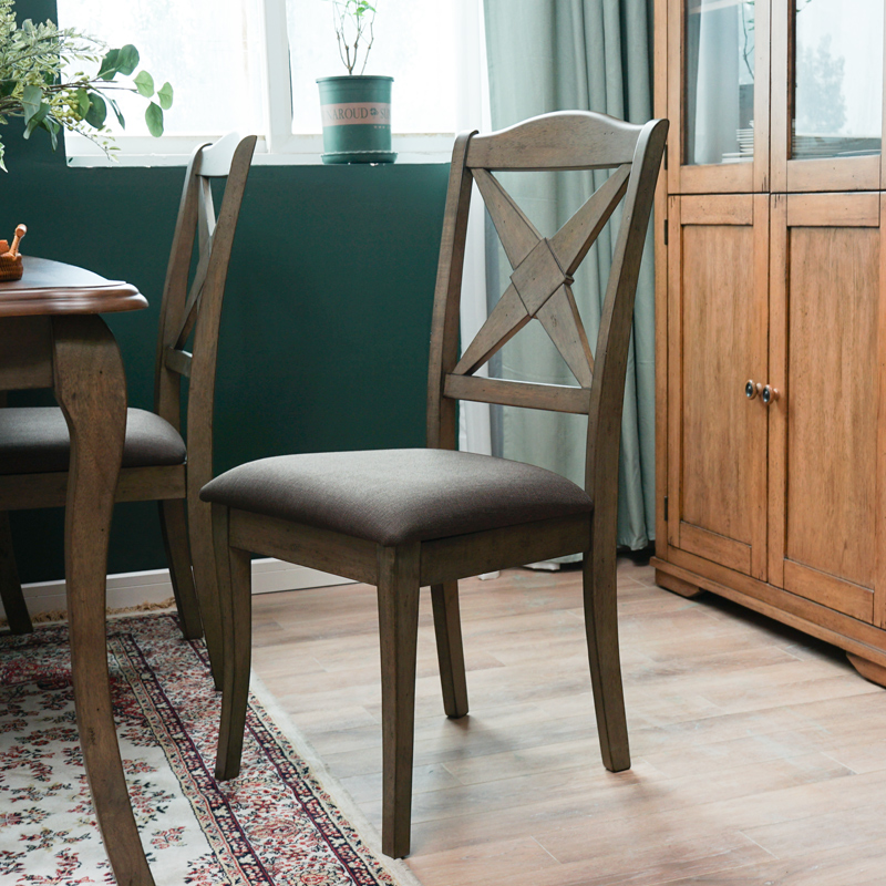 Dining table and chair 7-piece set) calm atmosphere) Imported solid wood dining chair) imported) Retro nostalgic soft bag dining chair ) imported) retro nostalgic solid wood dining chair