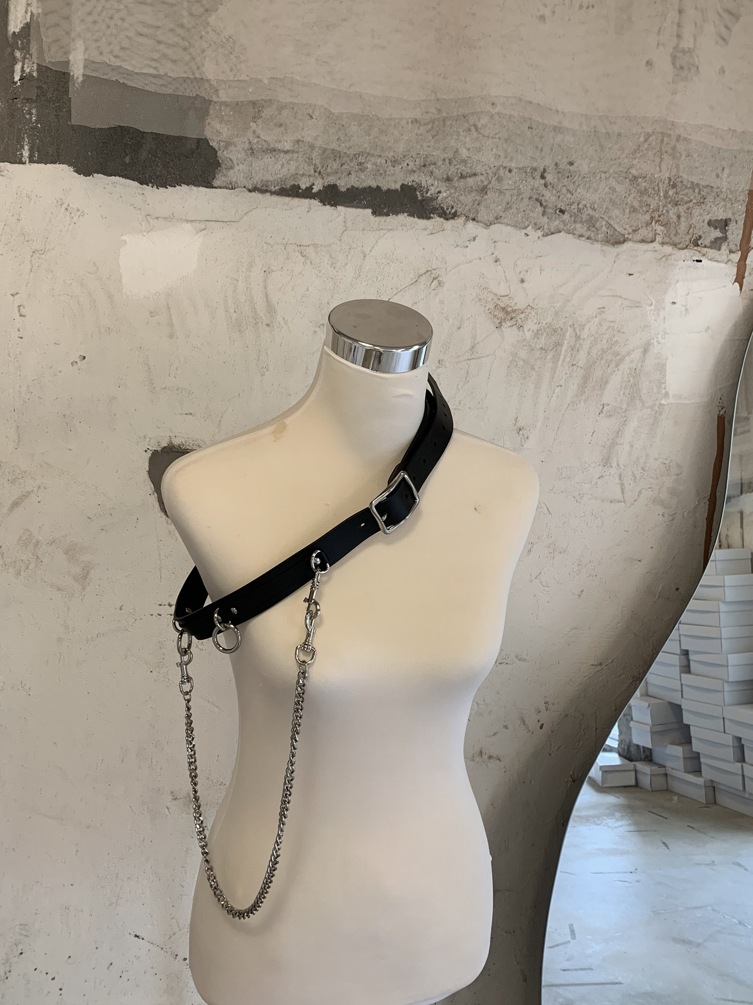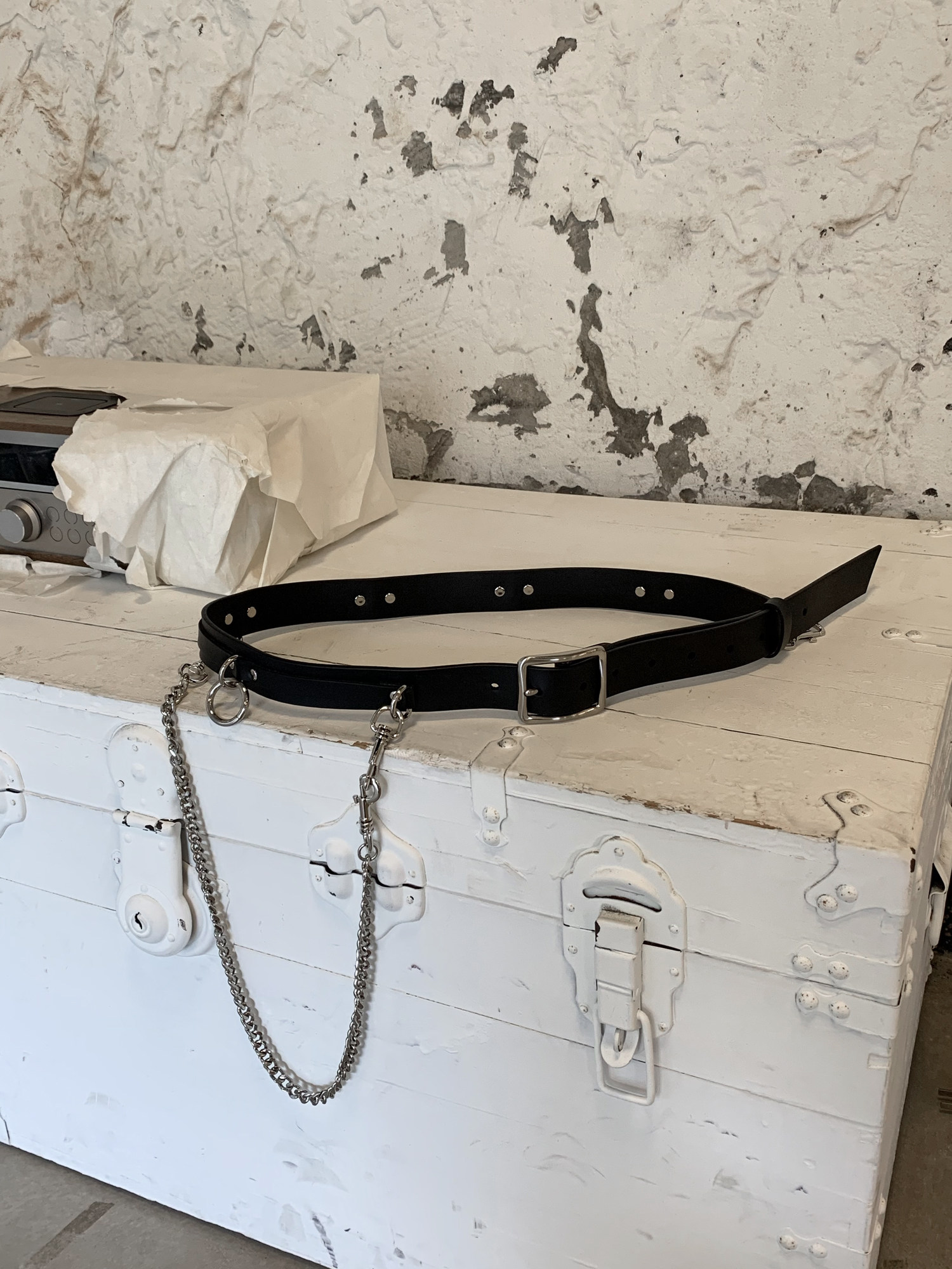 HOZI2022 years Summer new trendy men paired with super cool chains Circle Design Feel Black Leather Belt belt