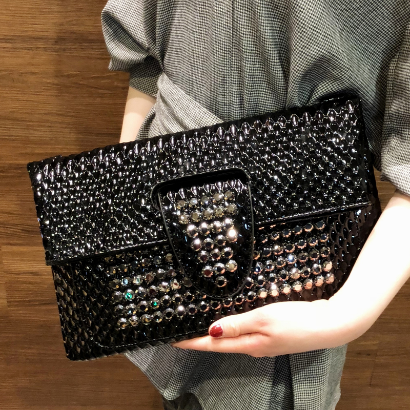 Hong Kong I Tgreg Handmaid's handbag Korean version handbag Packet Inlaid Drill Packet Handbag with Personality Banquet Clip