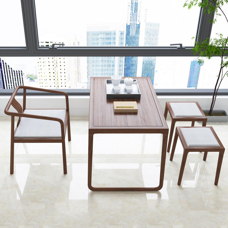 New Chinese style North American black walnut tea table and chair combination small apartment balcony leisure table desktop computer desk desk - Taobao