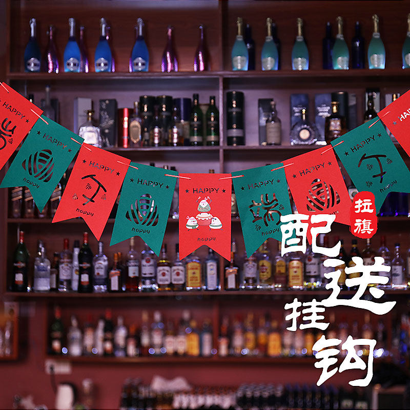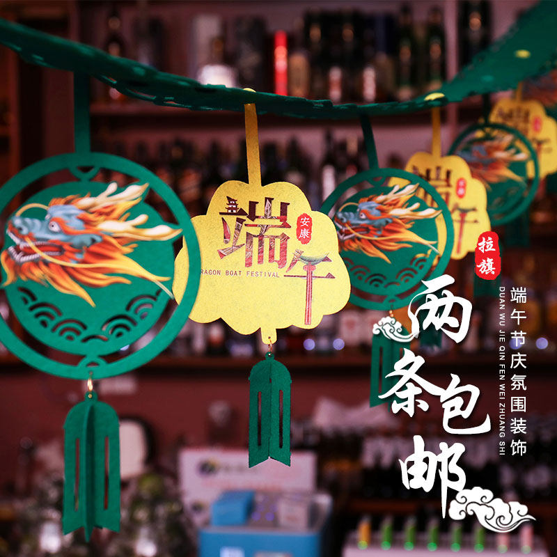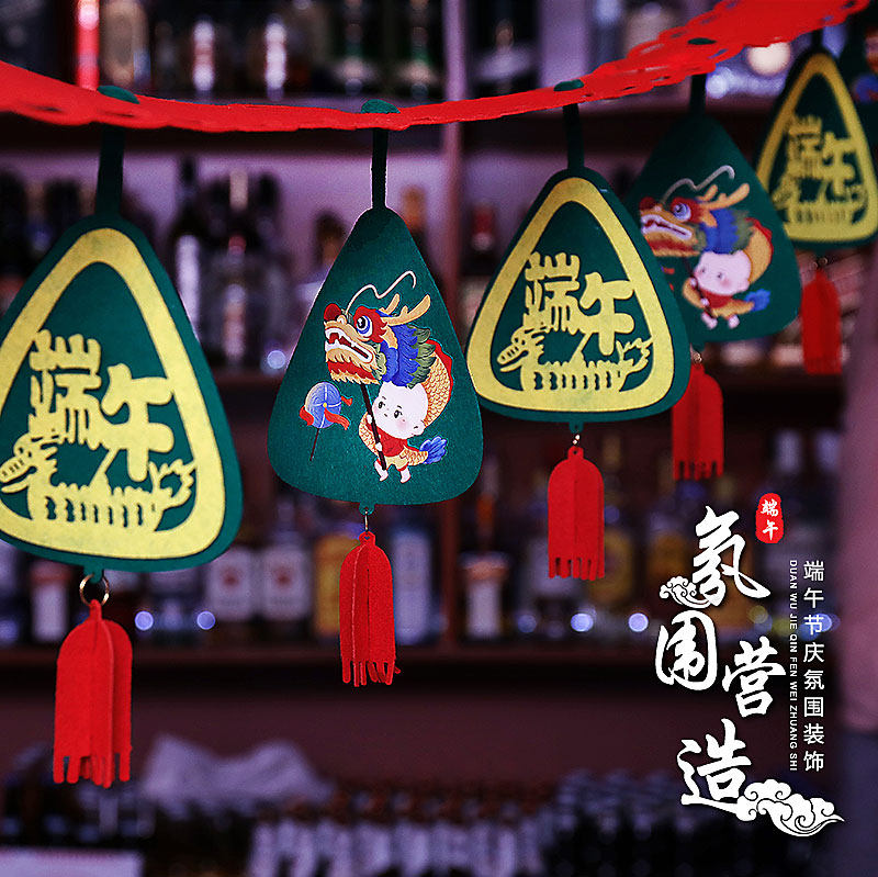 Dragon Boat Festival decorations, pull flags, pull flowers, hanging flags, glutinous rice ornaments, shopping malls, storefronts, store decoration scene layout