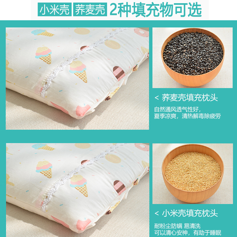 Fragrant Daifang Children Buckwheat Hull Pillow Cool rectangular Summer Cervical Spine Pillow Breathable Cool Pillow Cotton Sleeping Pillow Protection Neck Pillow