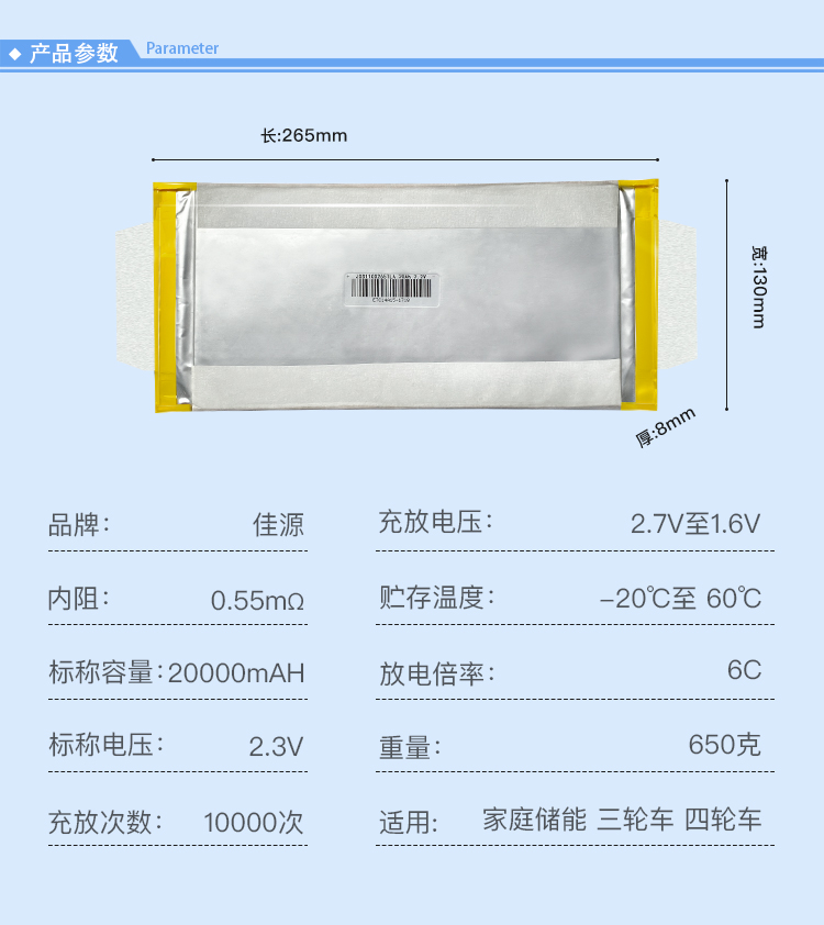 The new lithium titanate 2 3V20AH power lithium battery pack supports fast charging electric four-wheeler to resist low temperature and high rate