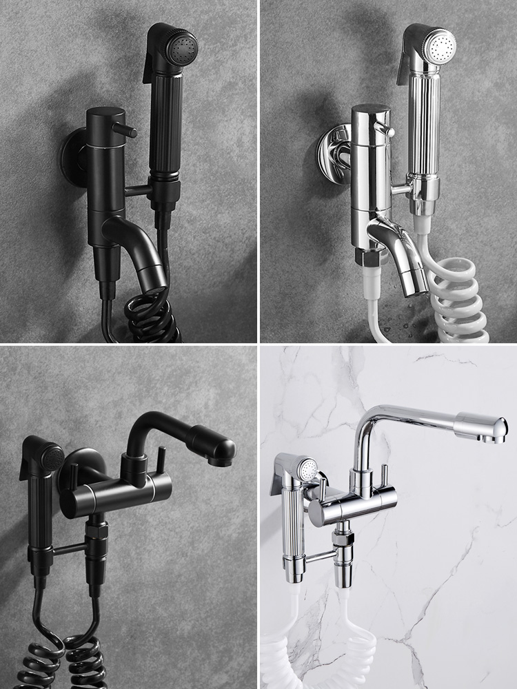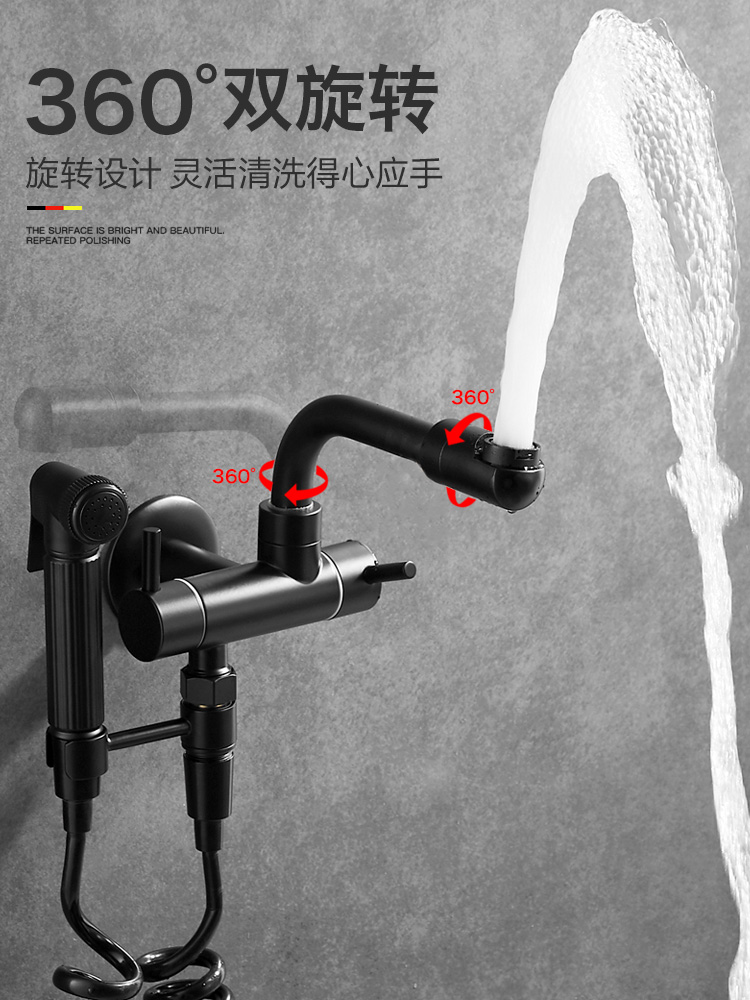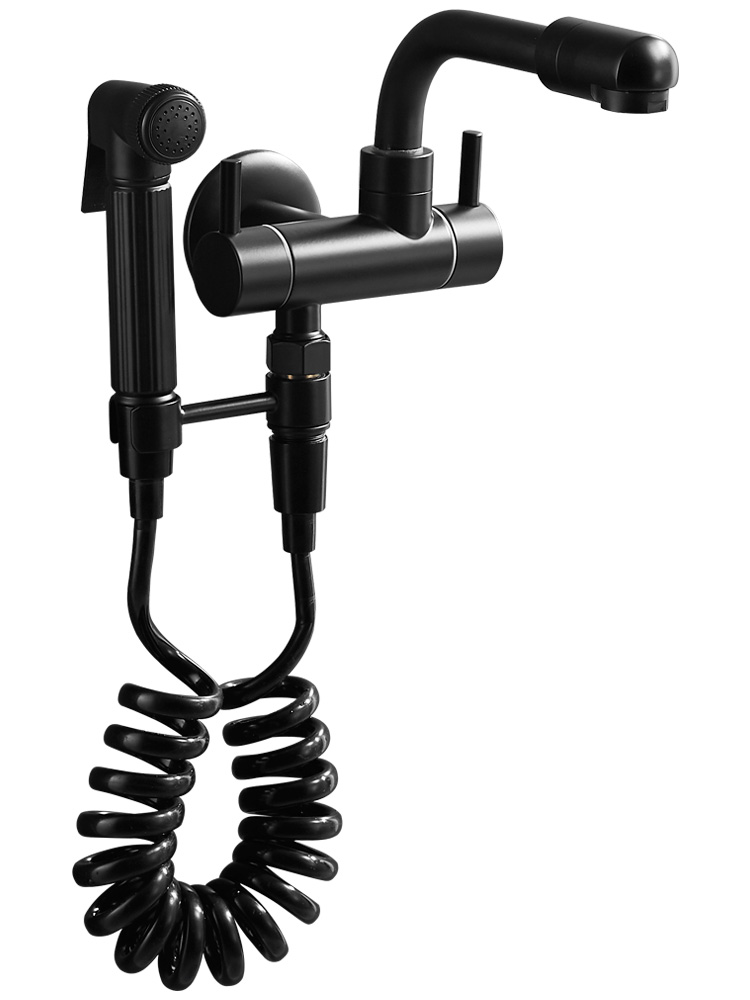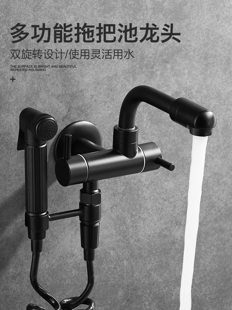 All-copper black mop pool faucet single cold band spray gun multi-function balcony with tow towing towed into the wall faucet