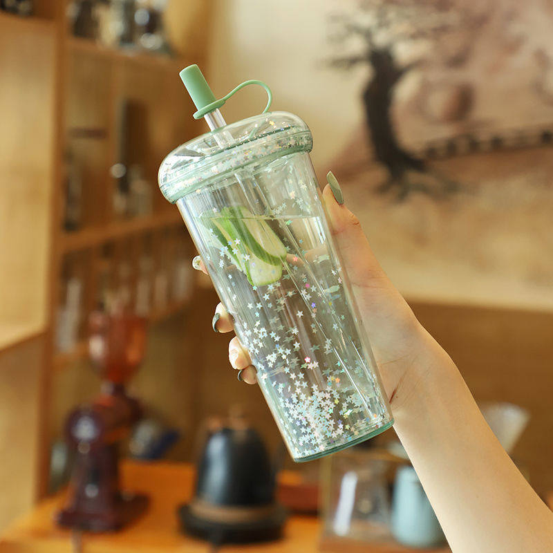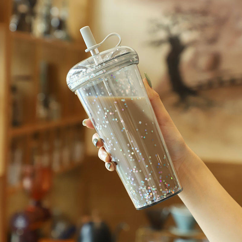 Girl heart milk tea cup straw drink cup children students Korean version cute plastic net red straw cup ins adults