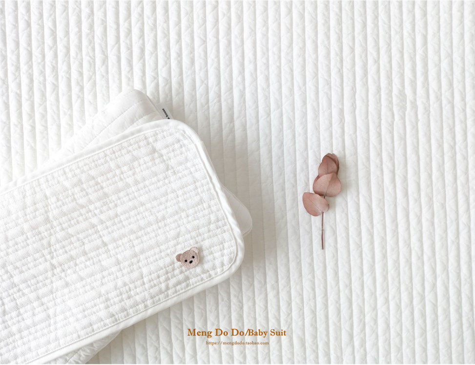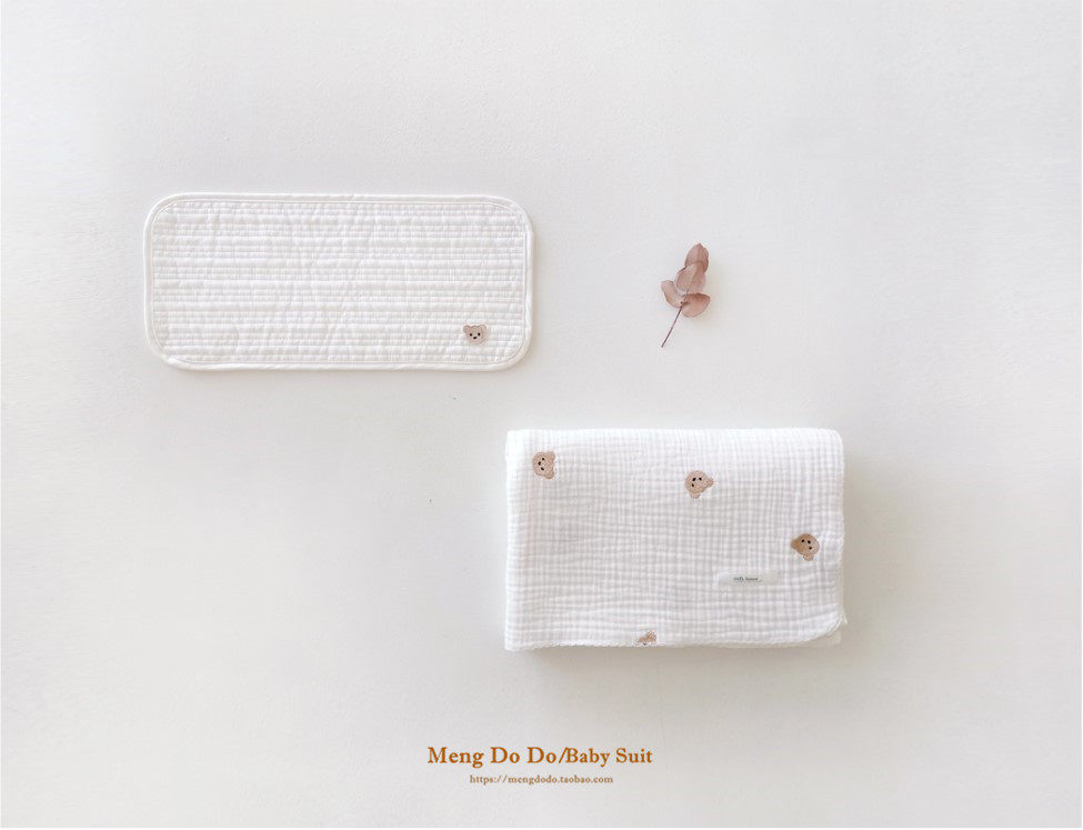Mengdodo cotton quilted bear embroidery newborn baby flat pillow cotton sweat-absorbent anti-spit milk pillow towel