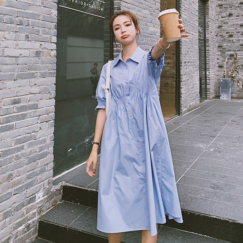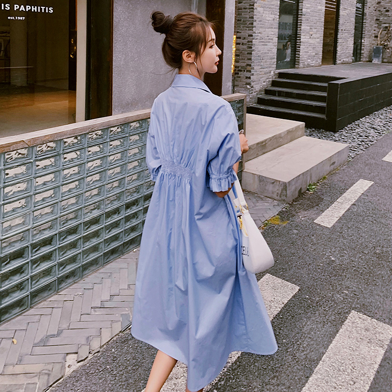 2021 Summer Grand size Loose Pregnancy Foreign Dress Fashion Gestation Maternity Dress Shirt Dress Shirt Skirt Summer Thin