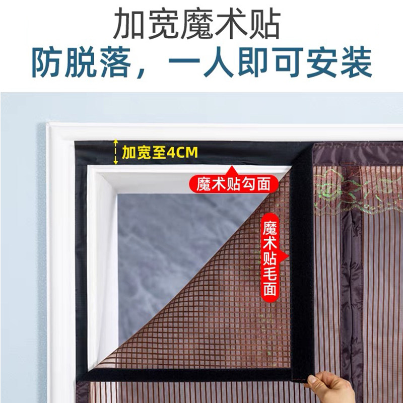 Summer anti-mosquito door curtain home bedroom partition encrypted screen window Velcro mosquito net anti-fly magnet pair suction without punching