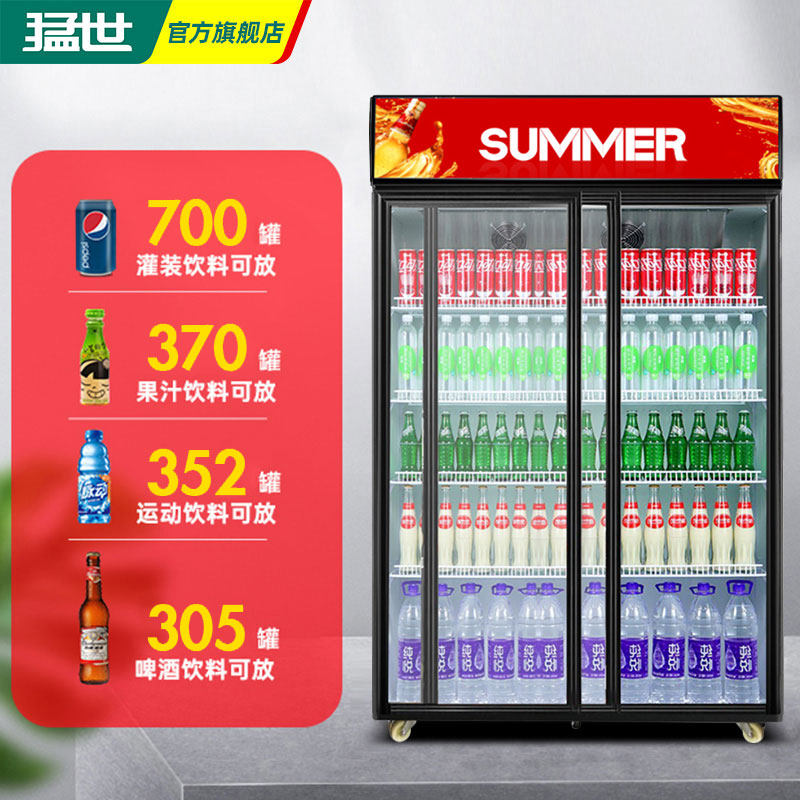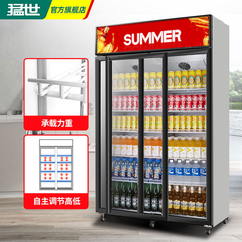Mengshi two-door three-door vertical display cabinet freezer commercial sliding door left and right sliding door glass door refrigerated beverage cabinet