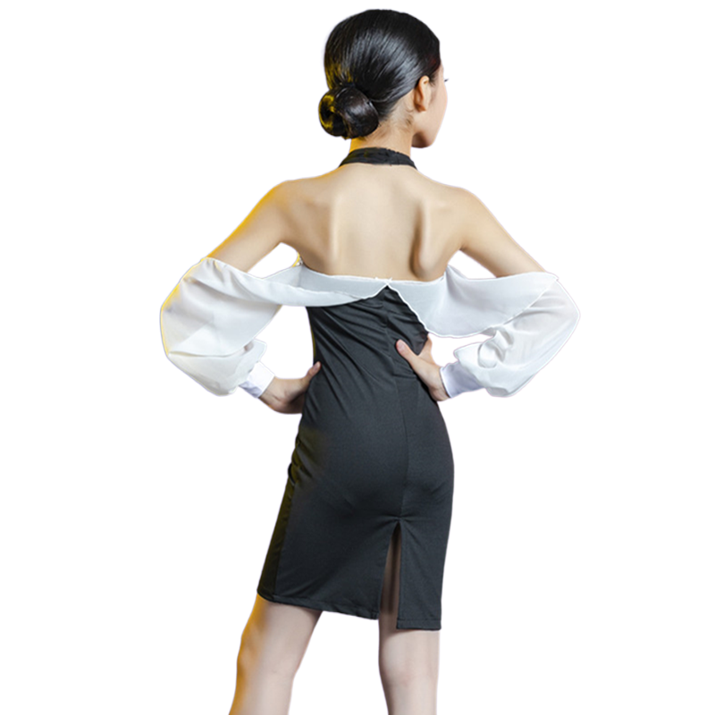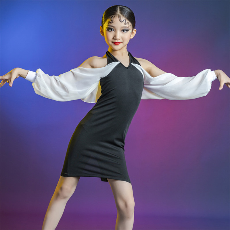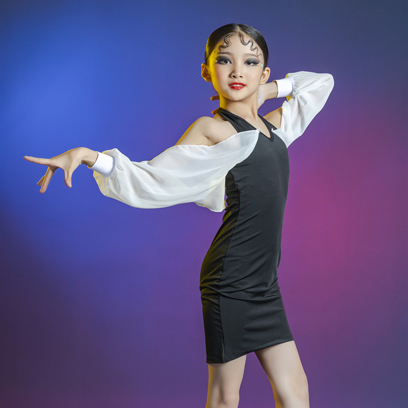 Young children professional Latin rehearsal performance to perform the spring women's tennis red children Latin dance outfit Bubble Sleeve Foreign Dress