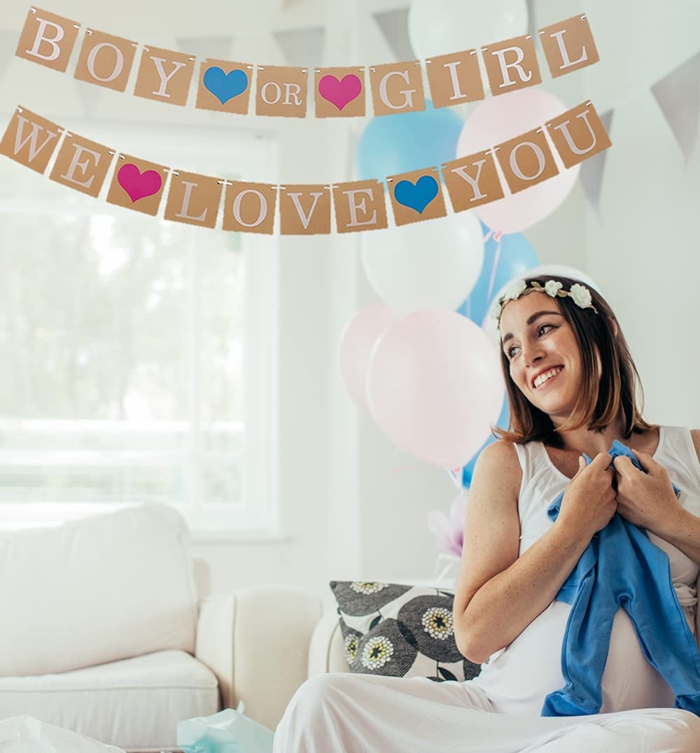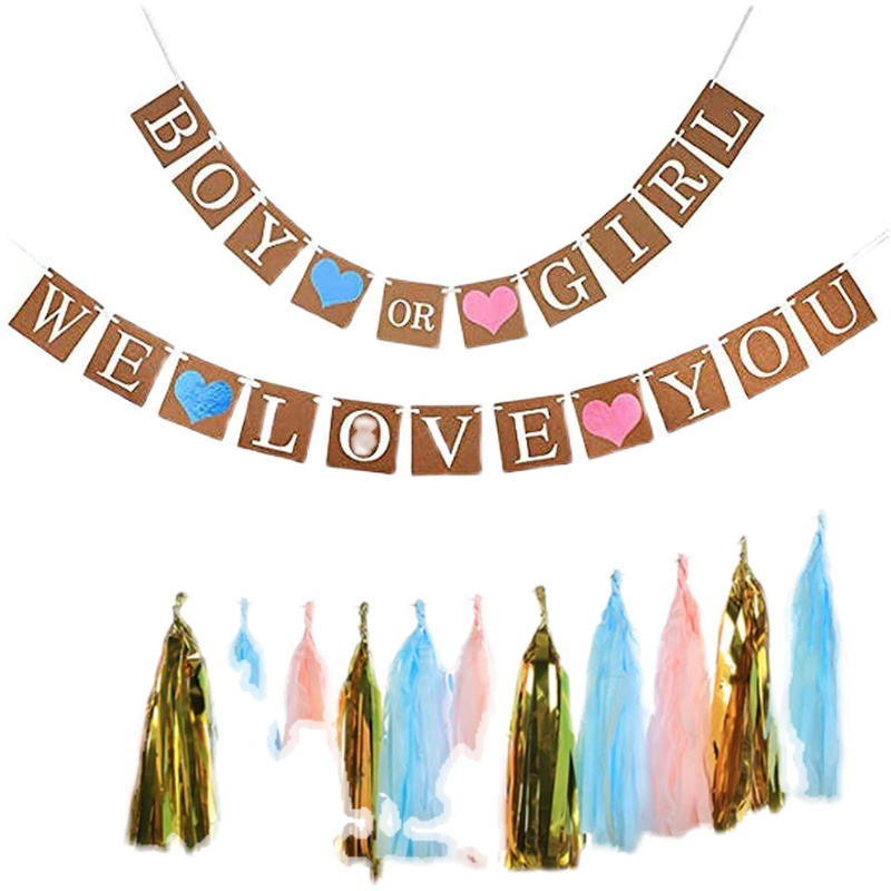 The welcoming baby party is decorated with the flag boy or girl we love you welcome the party baby shower-Taobao