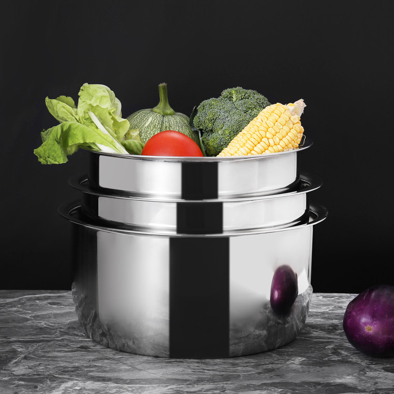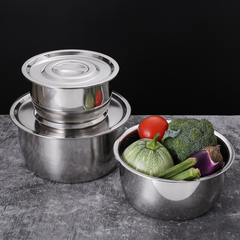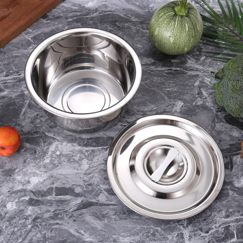 Stainless steel round seasoning cylinder cuisine basin cool mixing basin large bowl public oil basin with lid taste flushed kitchen large pig oil basin