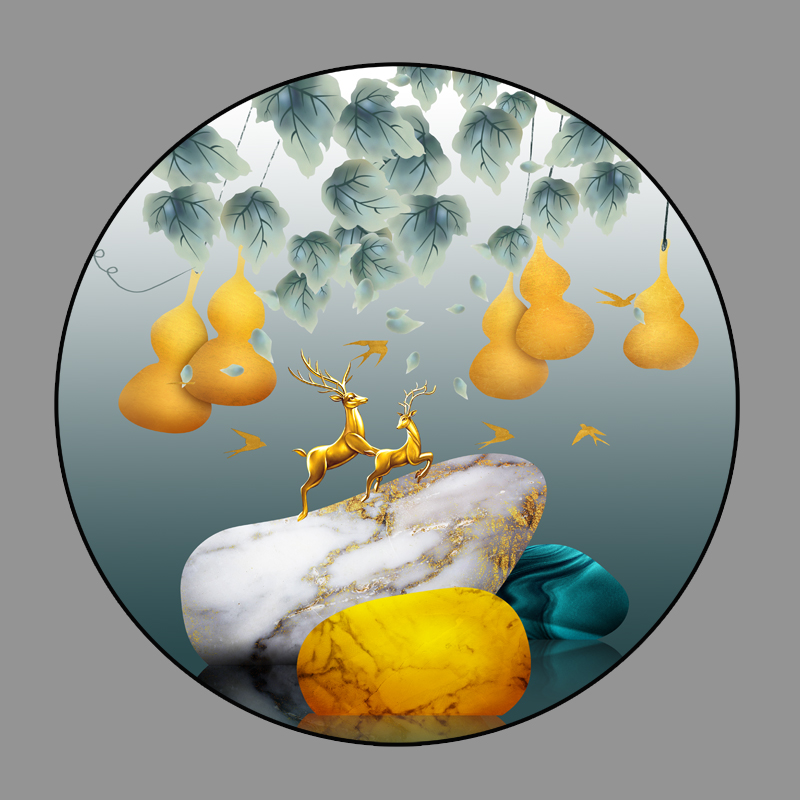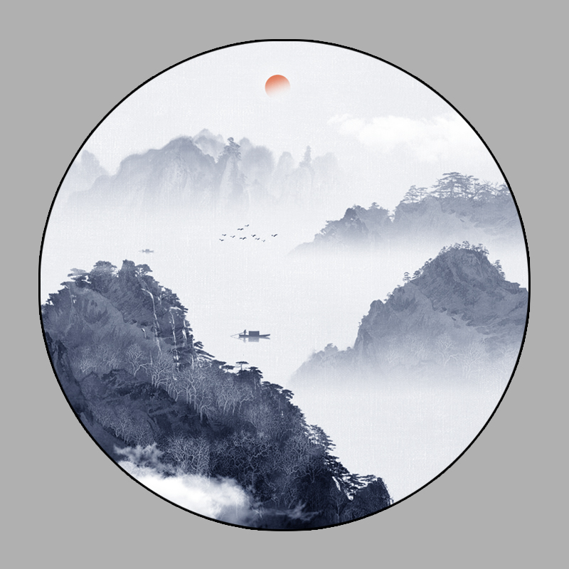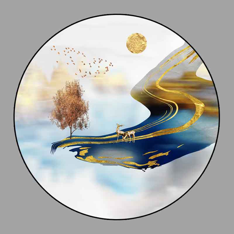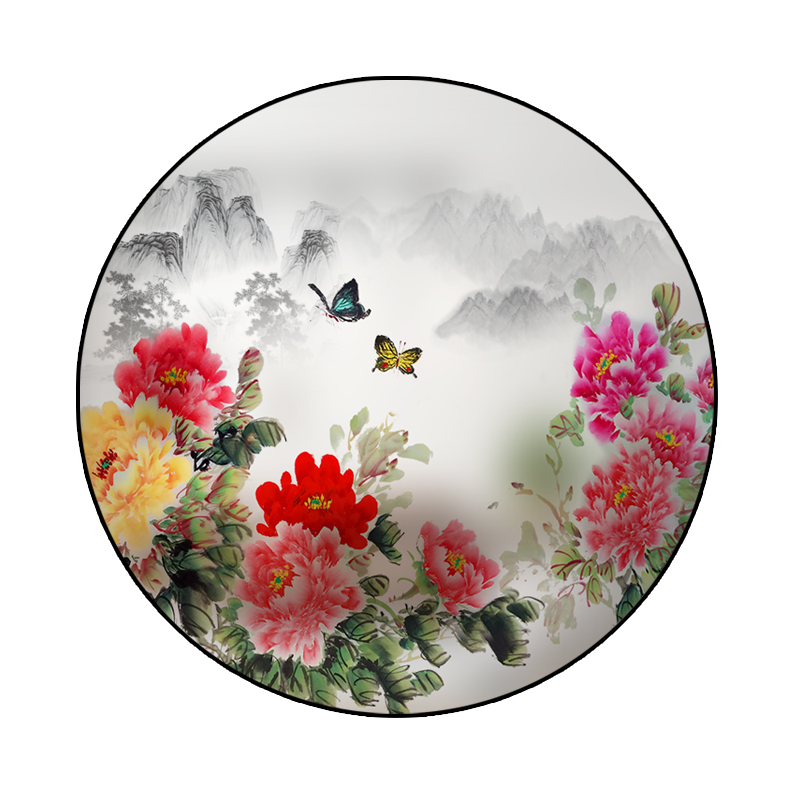 Custom round glass home partition Chinese screen landscape painting double-sided translucent tempered painting process entrance