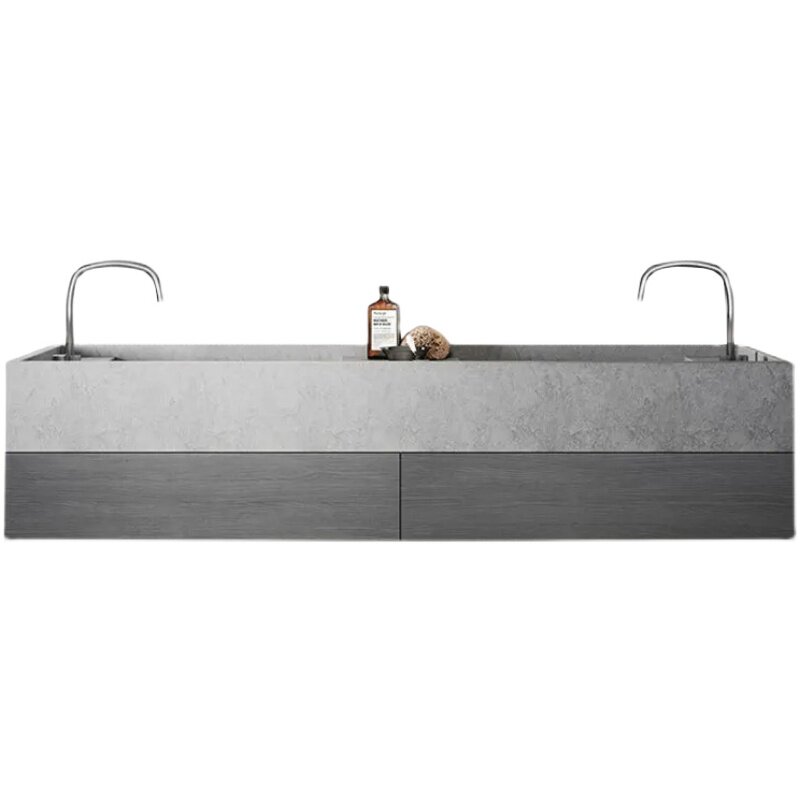 Net red rock plate integrated double table basin Nordic bathroom washbasin modern light lavish hanging wall-style washing bath room cabinet custom-made