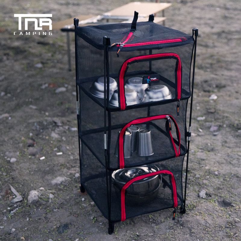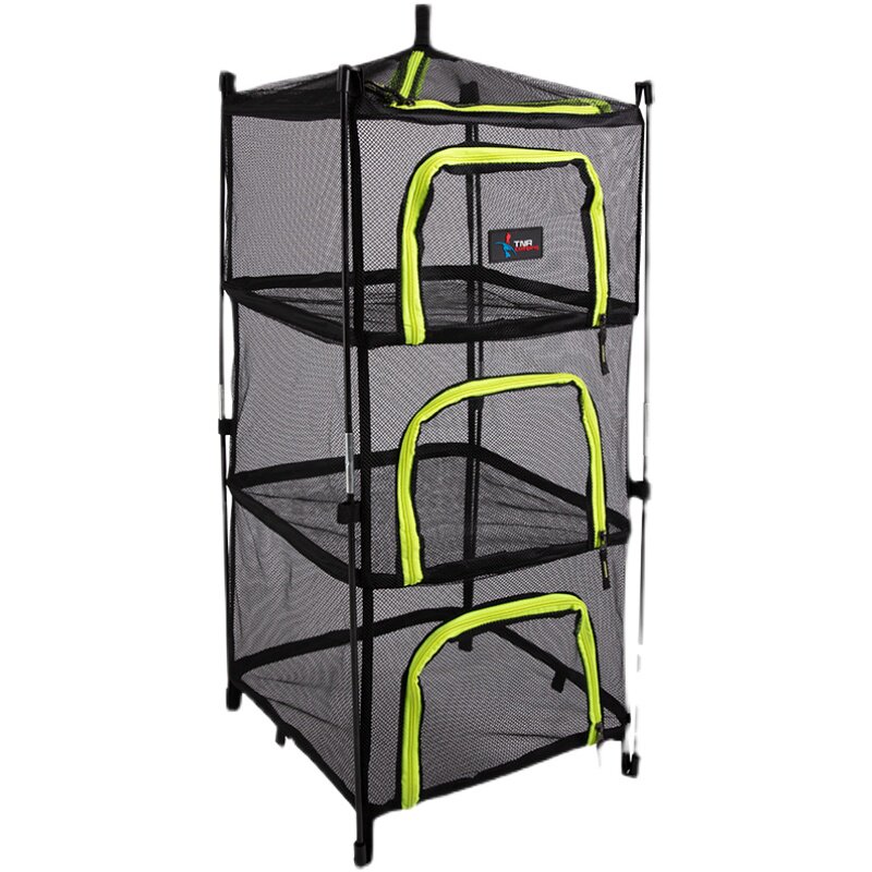Outdoor Folding Sunbathing Nets Four Floors Storage Basket Storage Basket Wild Camping Sun Fish Drying Rack Hanging Basket Drying Rack Subnetting Box