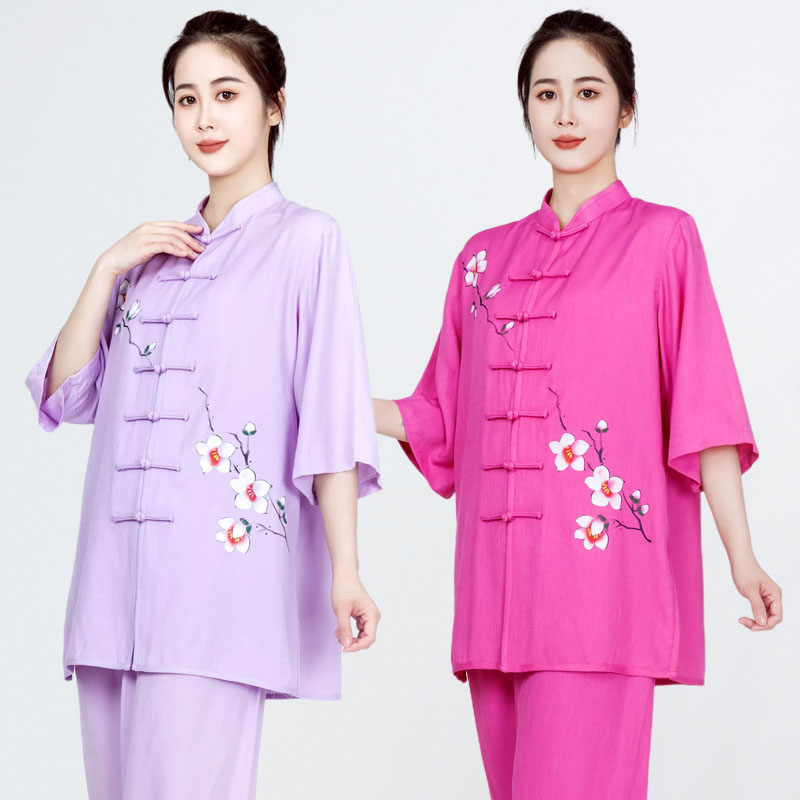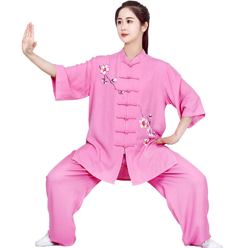 2022 new eight-paragraph brocade women's cotton linen breathable summer large size handpainted martial arts performance Taijiquan Tai Chi Fu