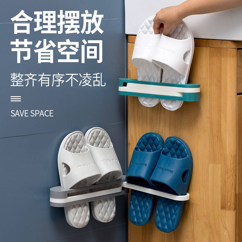Bathroom slippers rack wall-mounted hole-free home bathroom door behind sandals rack wall storage artifact