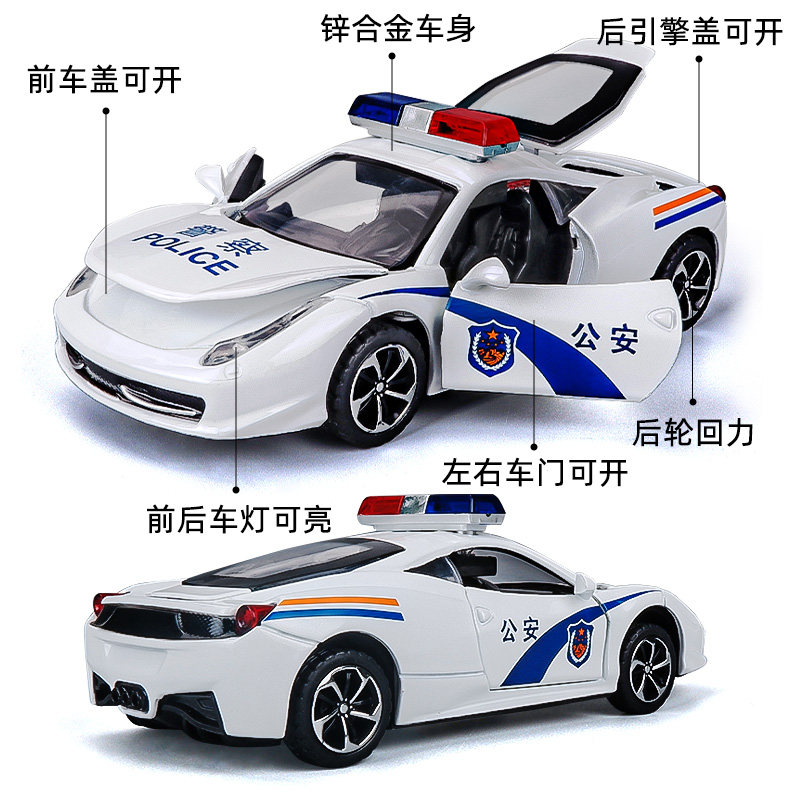 Alloy Sports Car Police Car Toy Simulation Small Car Model Children Toy Car Boy Back Force 110 Police Car Big