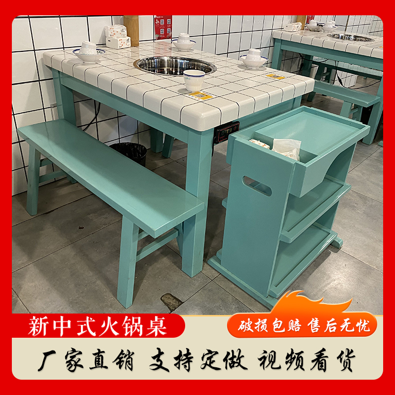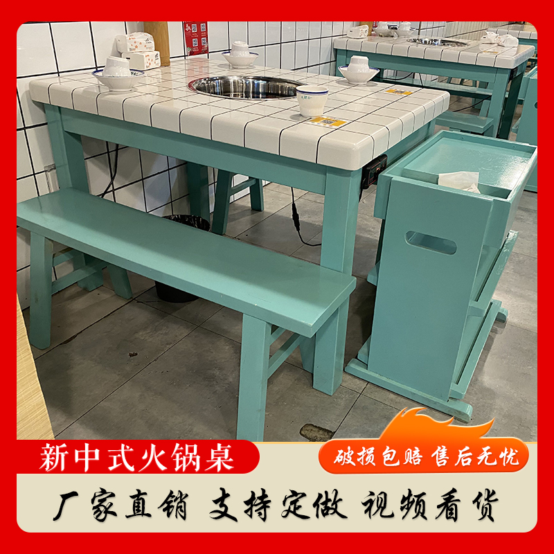 Restaurant skewer hot pot table Marble solid wood hot pot table and chair combination Liquefied gas smoke-free hot pot shop table and chair customization