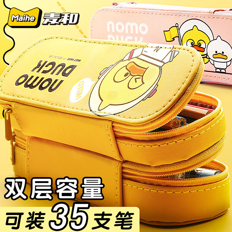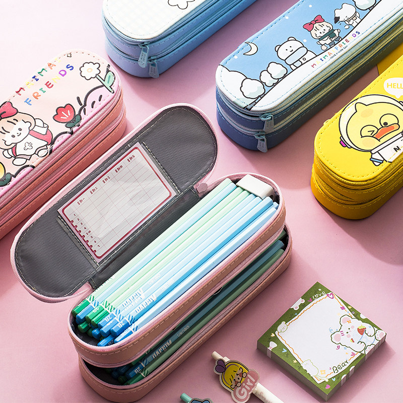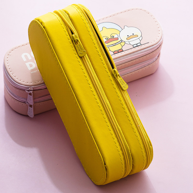 Wheat and double-layered pen pouch Canvas Elementary School Children Stationery Brief South Korea Lovely Day Series Little Fresher Lead Pencil Case