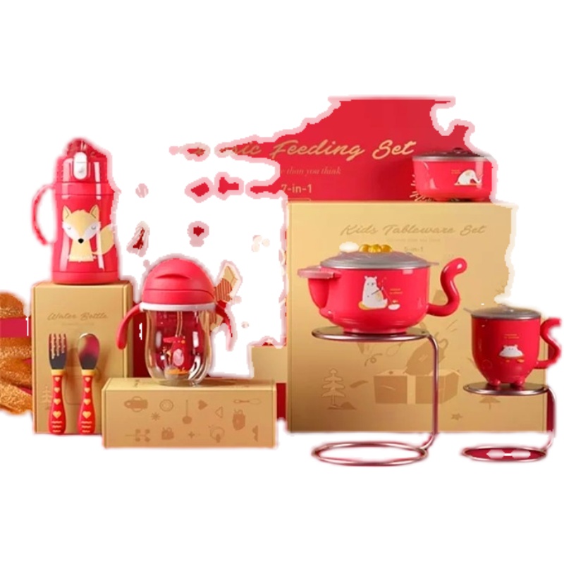(In stock) babycare baby tableware water cup exquisite gift box 7 pieces set for relatives and friends baby children gifts