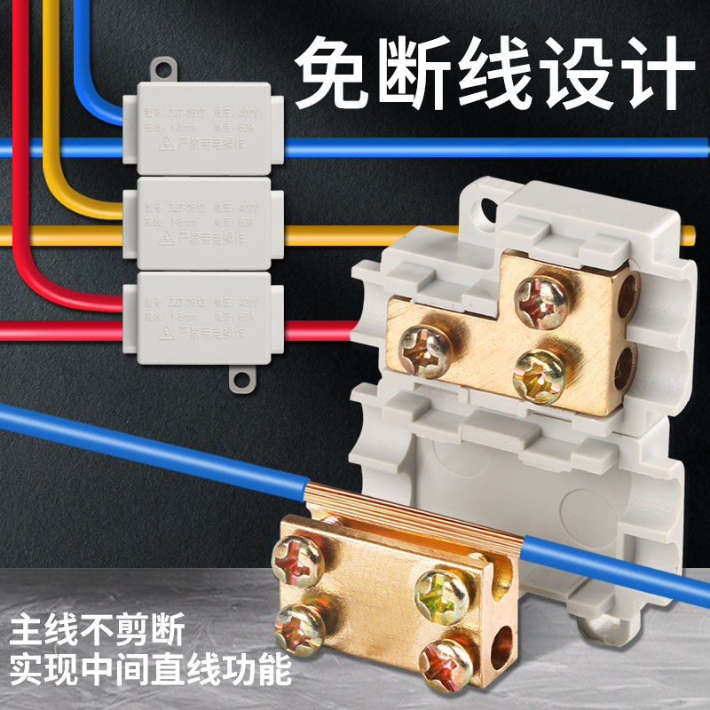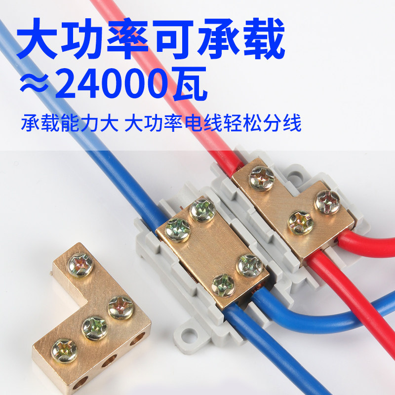 Terminal terminal high power wire joint 6 square screw type three - way copper 60A one - part two T type divider