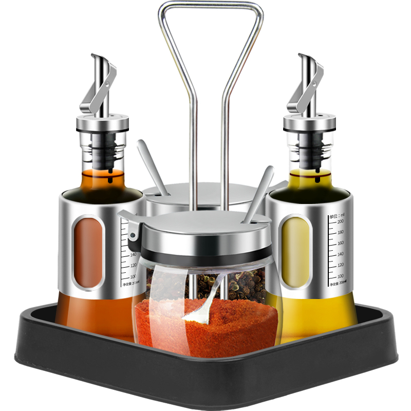 2 scale silver small oiler self-opening type 2 small spoon jars 4 black racks 2 scale silver small oiler pressing type 2 small spoon jars four black racks 2 Fengshou cone pressing type 2