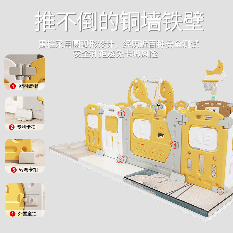 No crawling mat (Starry Yellow 14+2) basketball hoop + swing + rocking horse + slide