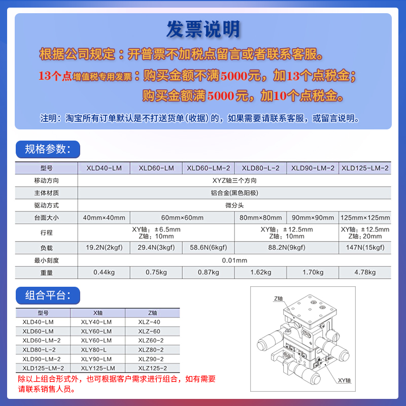 XYZ axis displacement table LD40-125 high-precision manual fine tuning three-dimensional moving precision optical slipway bench