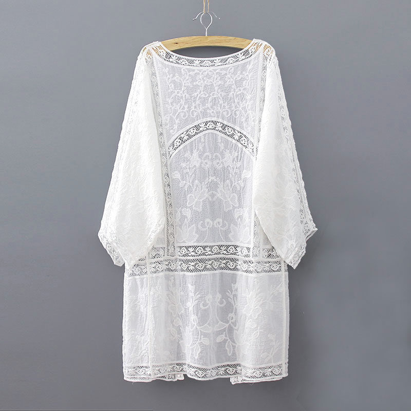 Medium long version pure cotton jacket Summer thin cardiovert bat sleeve outer lap sunscreen beach bikini hooded women hollowed-out