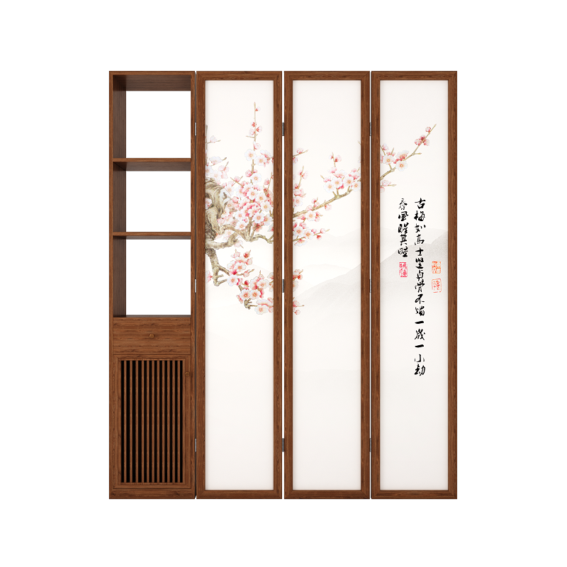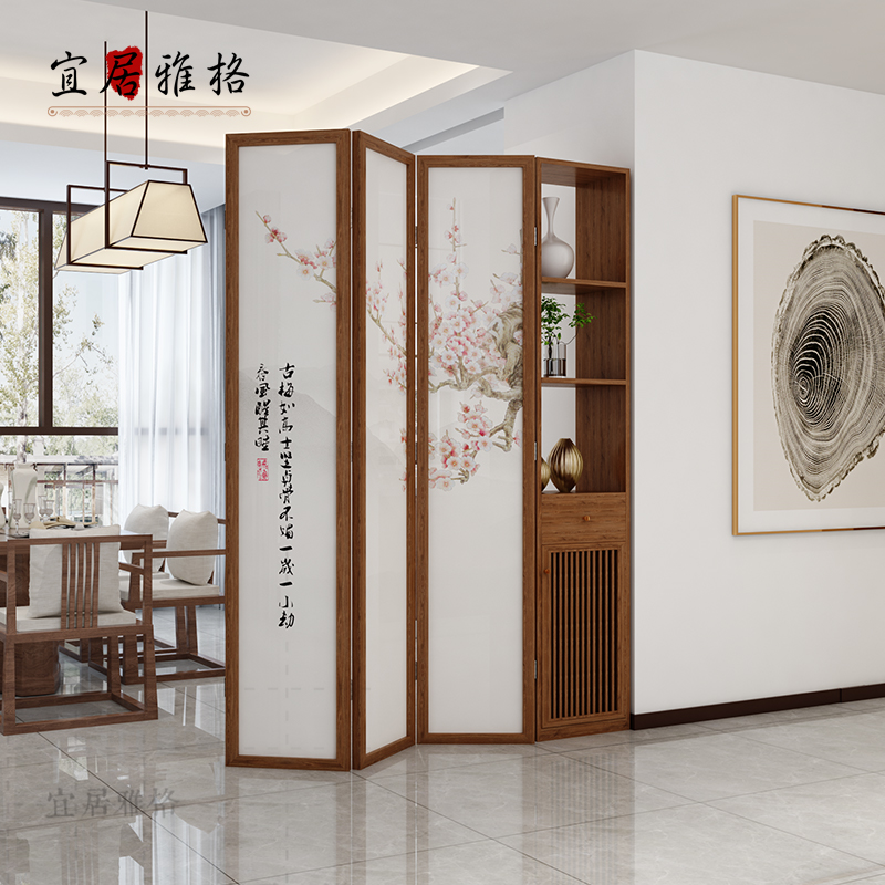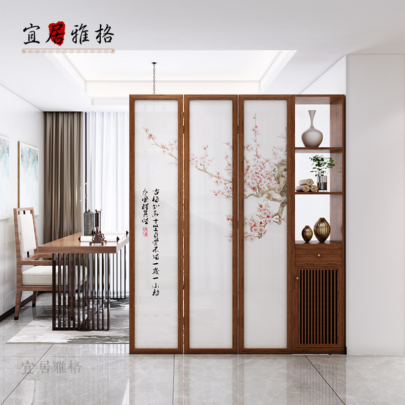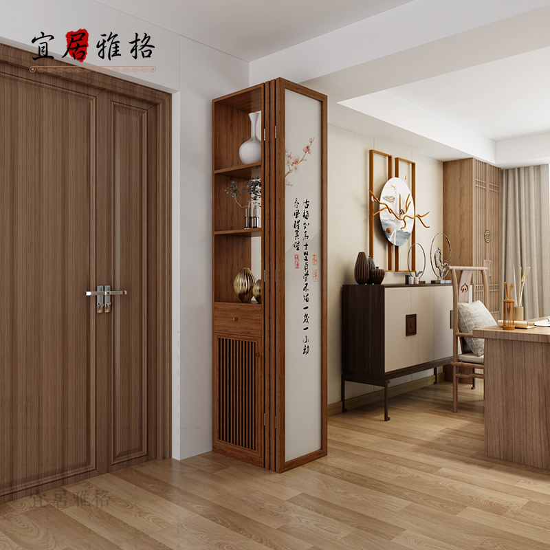 New Chinese-style screen partition living room into the household push-pull shelf into the door solid wood porch decoration hollow screen cabinet