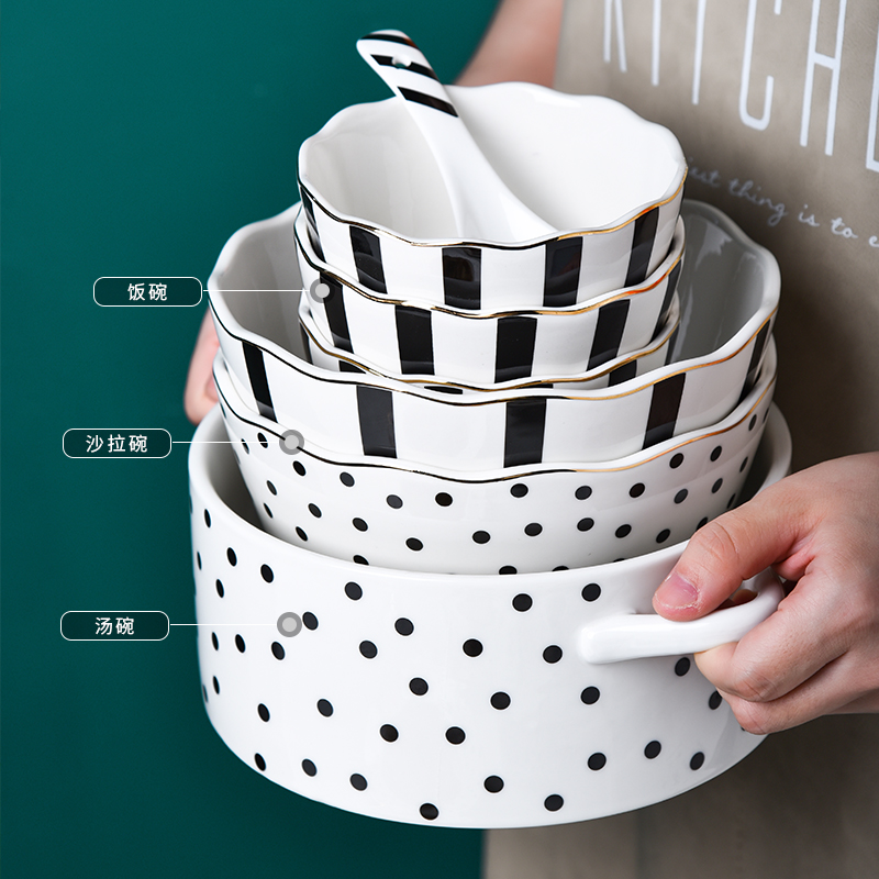 Stripe-lace deep disc stripe-Twin Ear Soup Bowl Wave Dot-Twin Ear Soup Bowl Polo Dot-Lace Deep Pan Stripe-Rice Bowl point -7 - inch soup Bowl Stripe-Oval Disc Strip