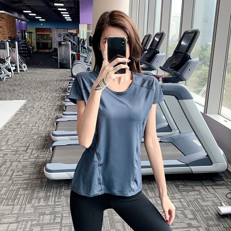 Sweat loose exercise T-shirt short sleeve running mesh breathable yoga toilet gym training speed dry clothes