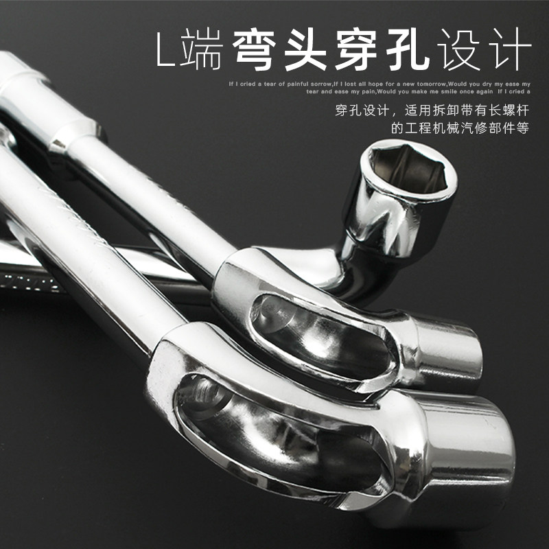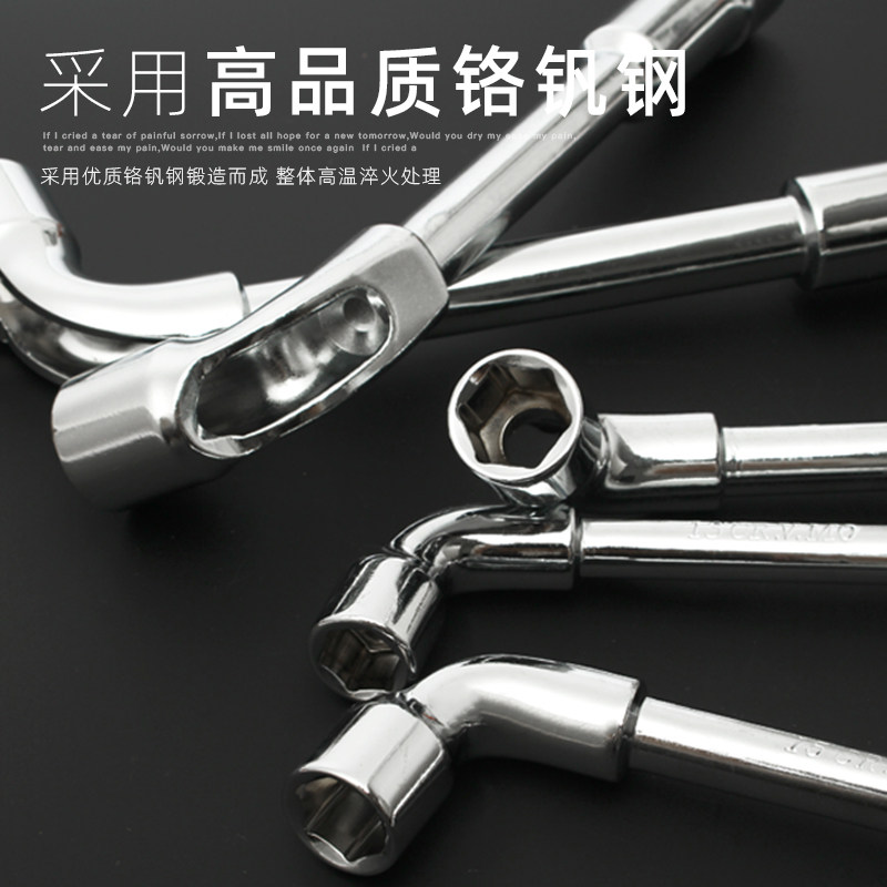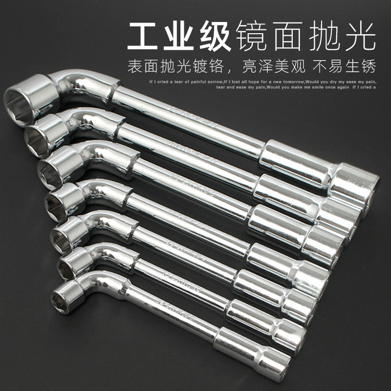 50BV30 steel L type sleeve wrench elbow perforated 7-shaped multifunctional outer hexagonal double head cigarette wrench 6-24