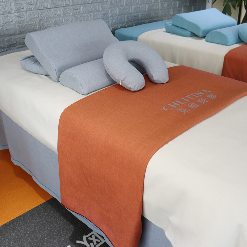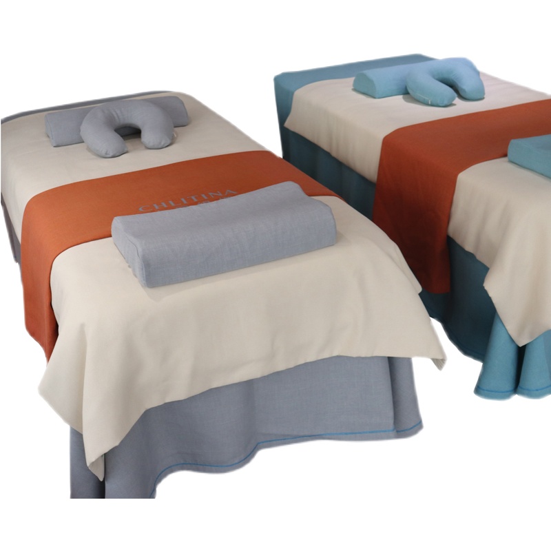 Simple point four-piece set Beige simple point four-piece set Light gray simple point four-piece set Light blue matching color Foot pillow matching color Latex lying pillow matching color Latex pillow orange (bed flag