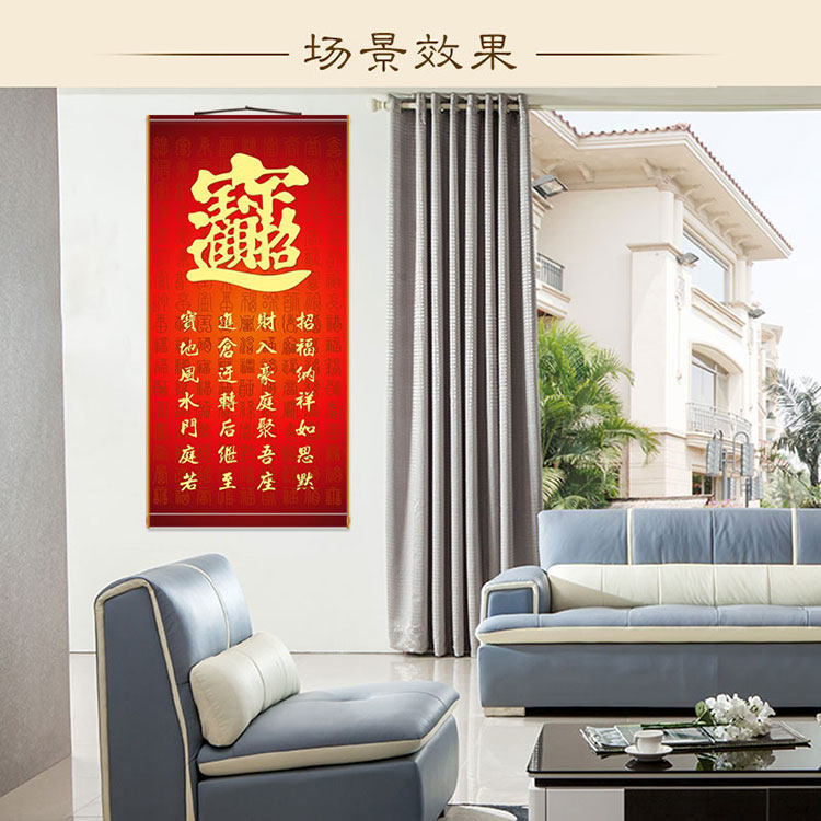 The Entrance Treasure of the Calligraphy And Treasure of the Calligraphy Scroll Hung Painting Hundreds Fu Feng Shui Painting Book House Xuanguan Decorative Character Painting Silk Painting Custom