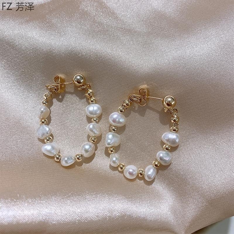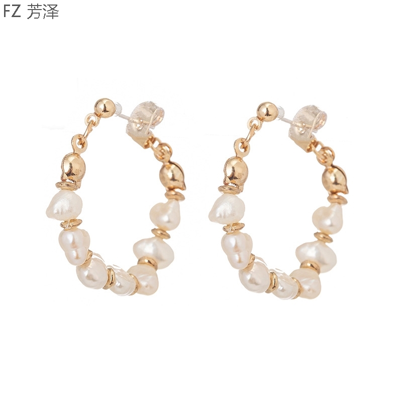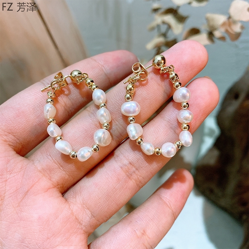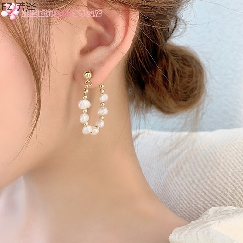 South Korea's same style pearl sterling silver earrings high-end feeling Internet celebrity slim temperament French cold wind circle super fairy earrings