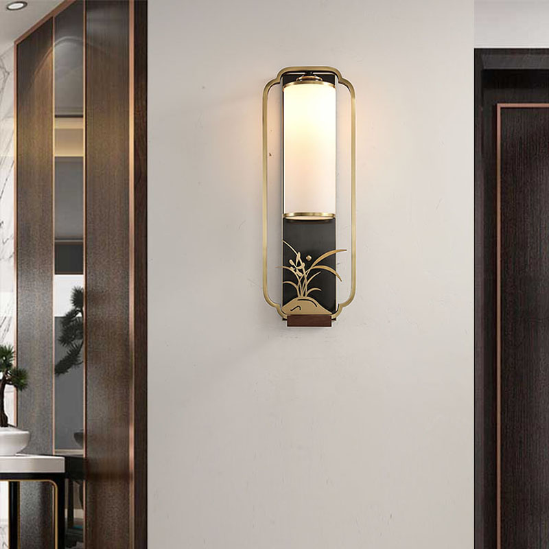 New Chinese style wall lamp living room luxury TV wall decoration plum orchid bamboo modern bedroom bedside retro corridor aisle lamp