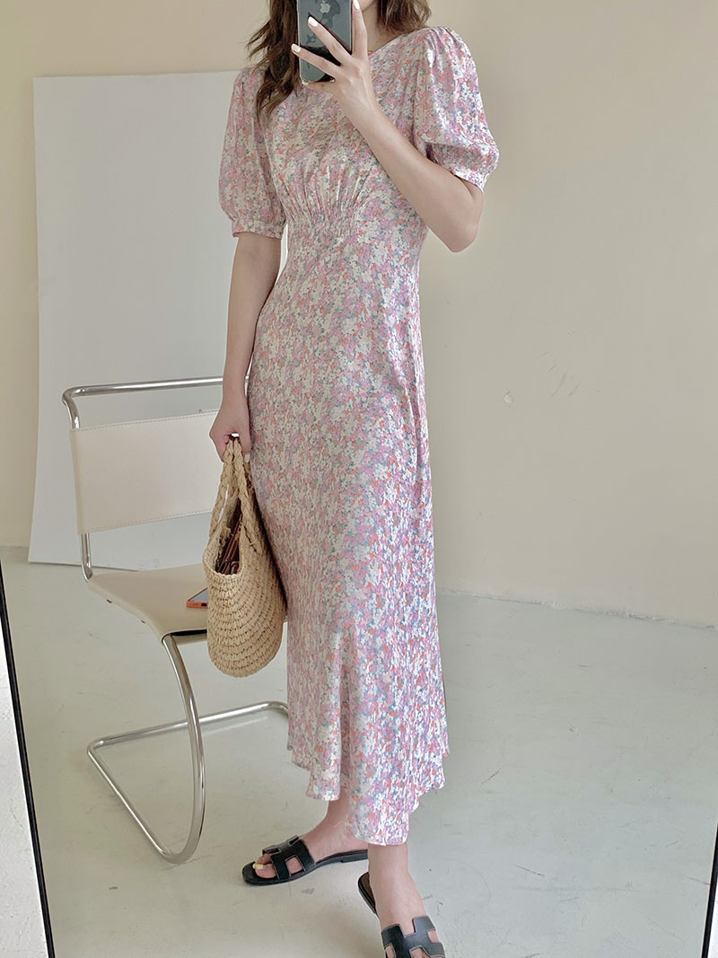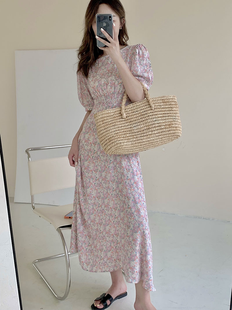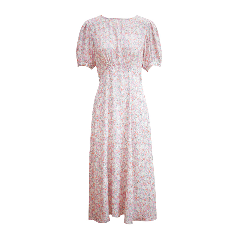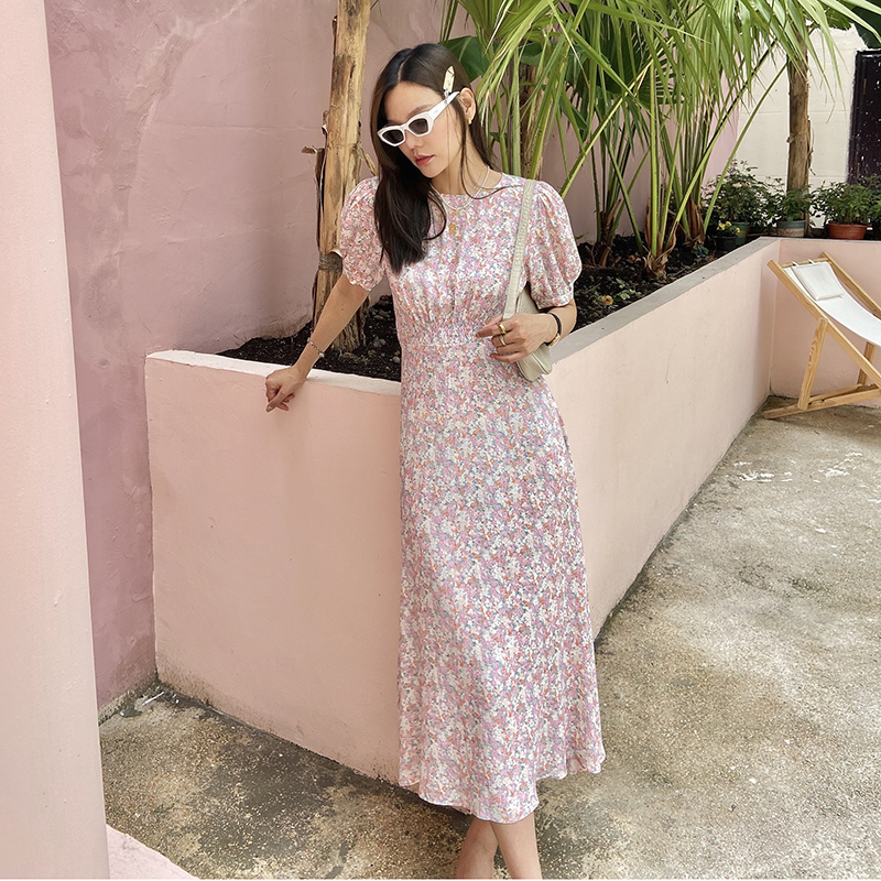 Xiaoxiaola 1937 blogger with the same style powder fresh high ji floral cool ins wind dress waist waist temperament skirt